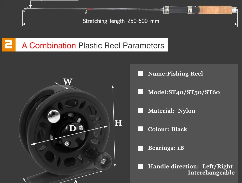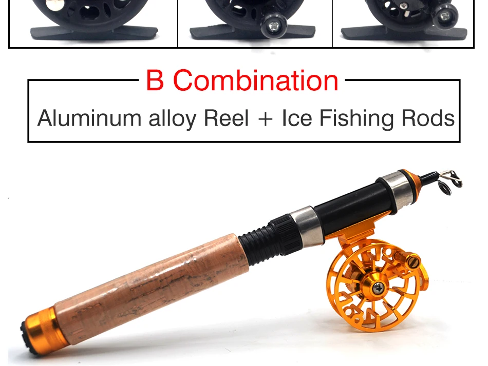 MNFT-caña de pescar telescópica en hielo, carrete giratorio, rueda de pesca, aparejos de pesca combinados, juego de carrete de pesca en hielo de invierno, 1 Juego