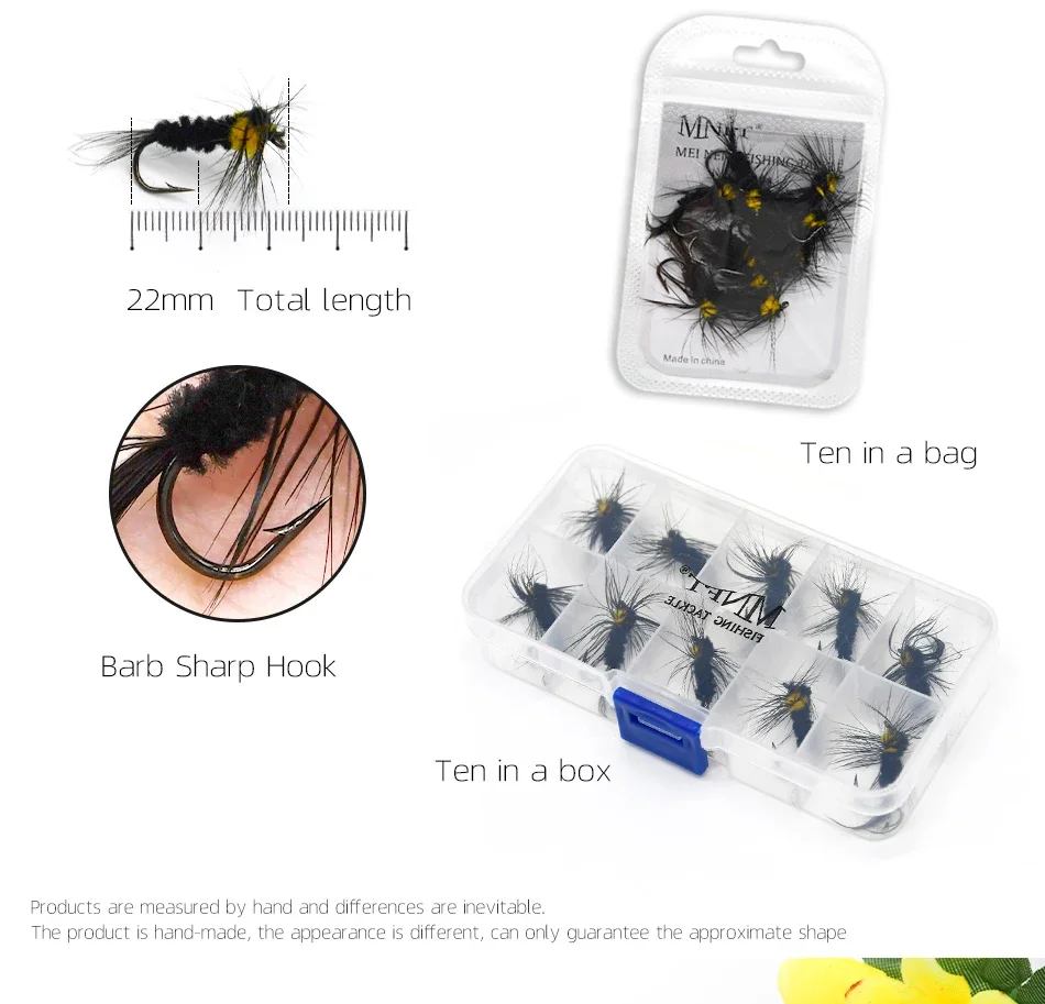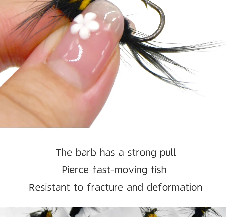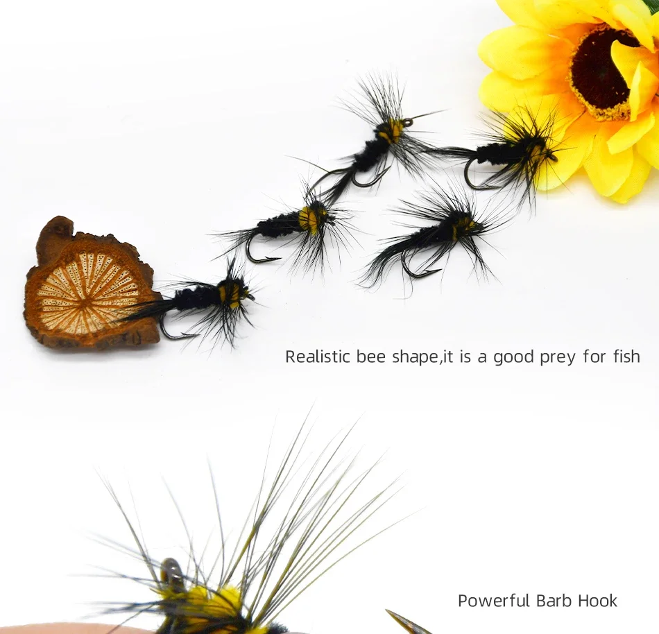 MNFT-Cebo Artificial para pesca al aire libre, 10 piezas, 6 #, cola de abeja, avispas amarillas y negras, trucha