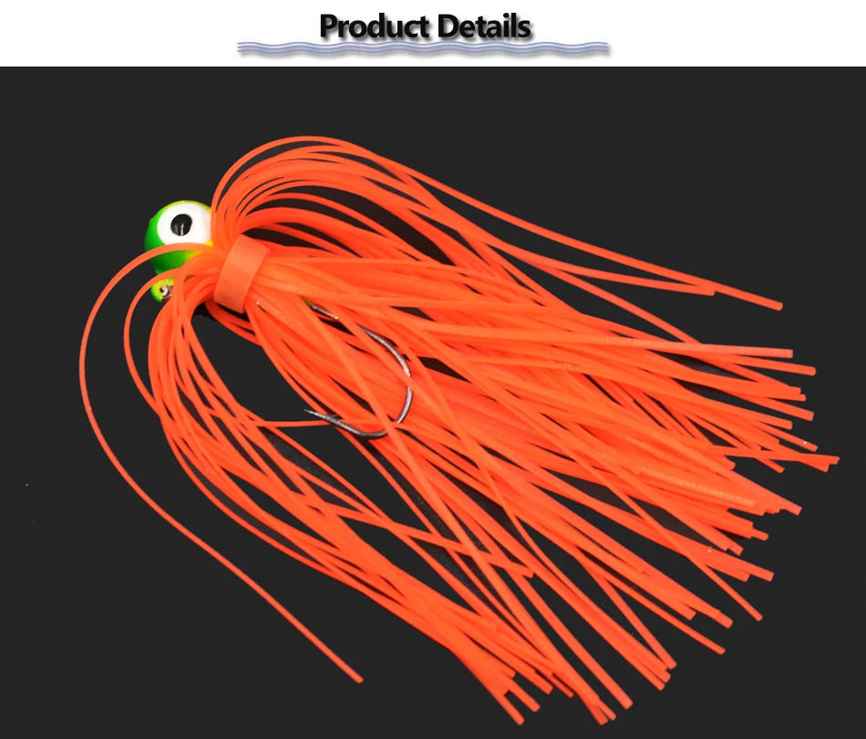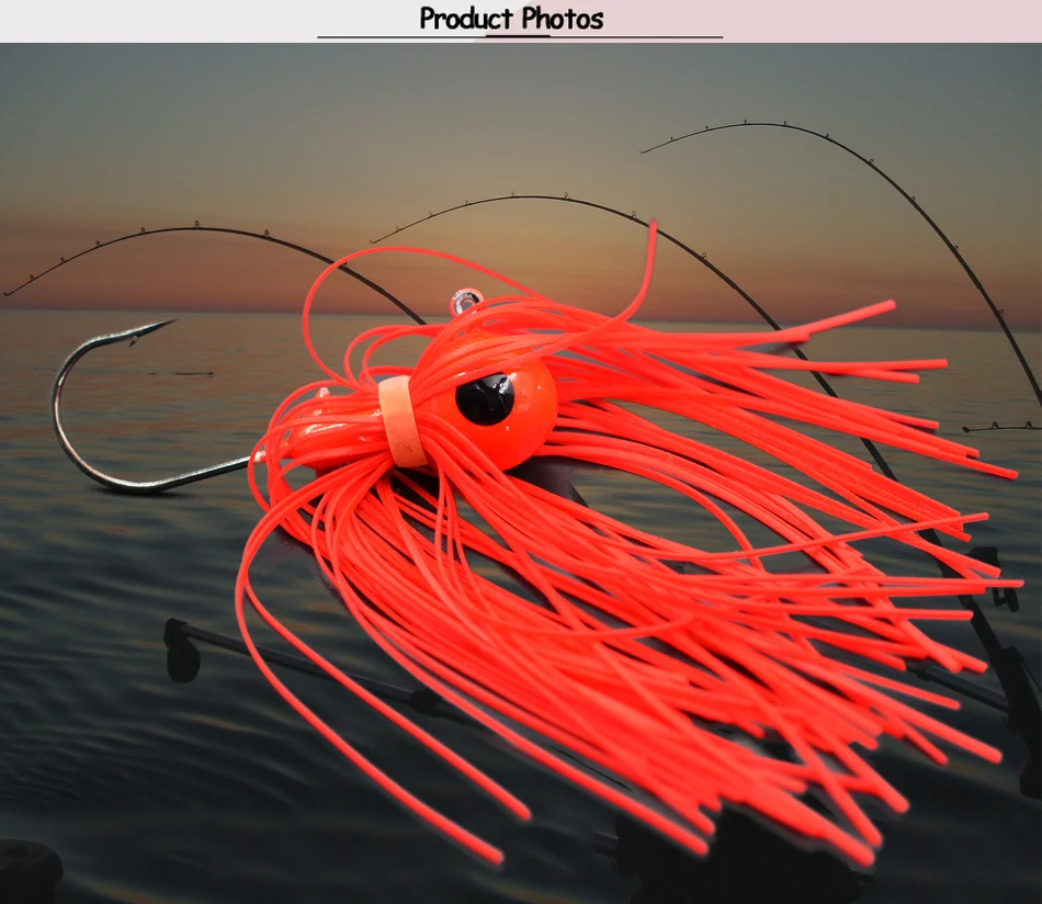 MNFT-cebo de Pesca con cabeza de anzuelo, 2 uds., señuelo de Pesca de agua salada, falda de silicona, aparejos de curricán, gancho de acero de alto carbono para Barba