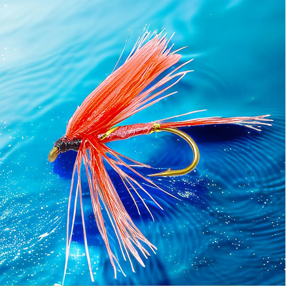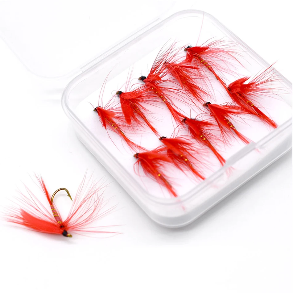 MNFT-Cebo de pesca con mosca para trucha, salmón, Mayfly, forma realista, rojo, 10 piezas