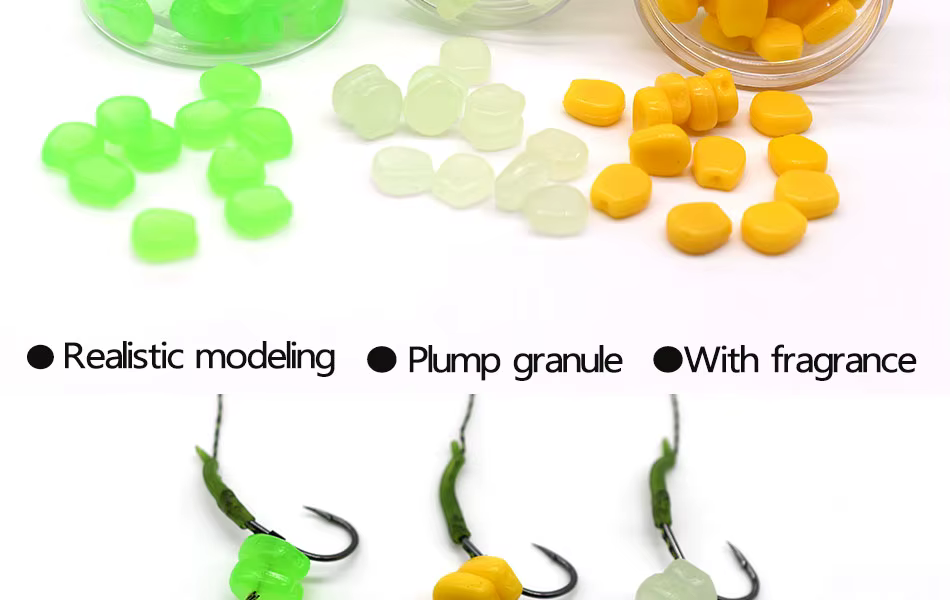 ●Realista y vivo de silicona suave parece más realista Es un debe accesorio para la pesca Una buena asistencia para ir A pescar con el buen efecto de colgante de grano de maíz