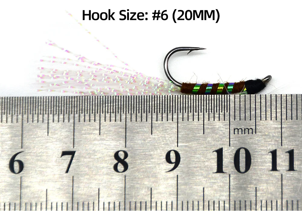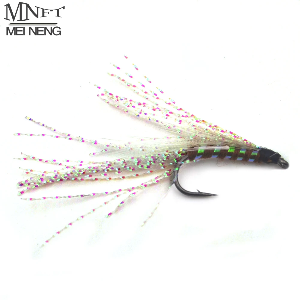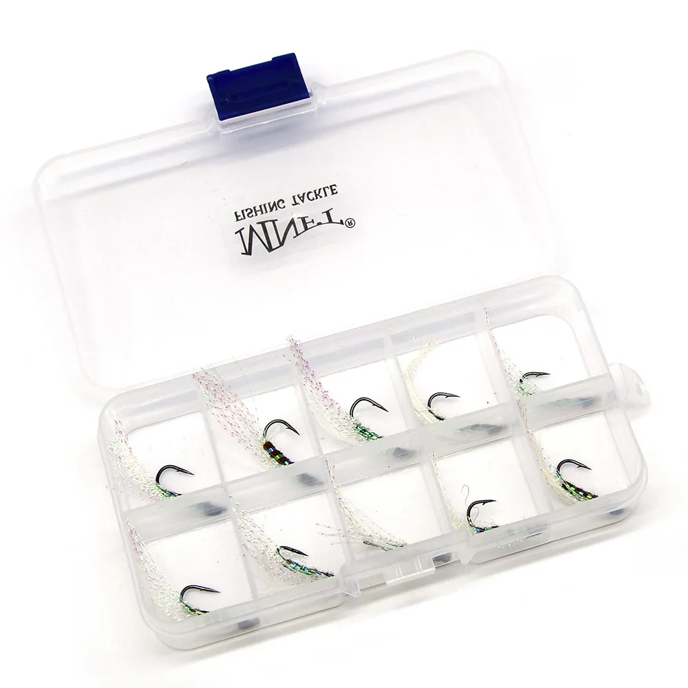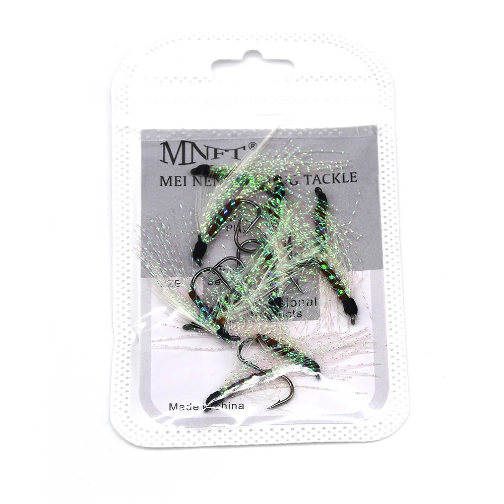 MNFT-cebos de pesca con mosca, 10 piezas, 6 #, blanco, arcoíris, cristal, Flash
