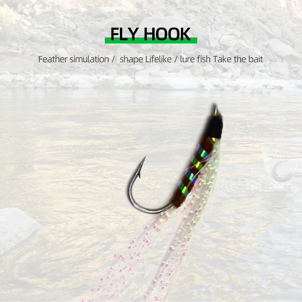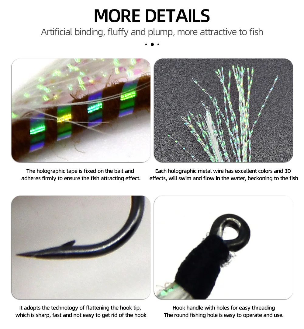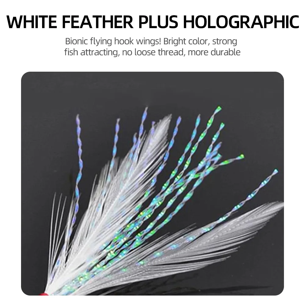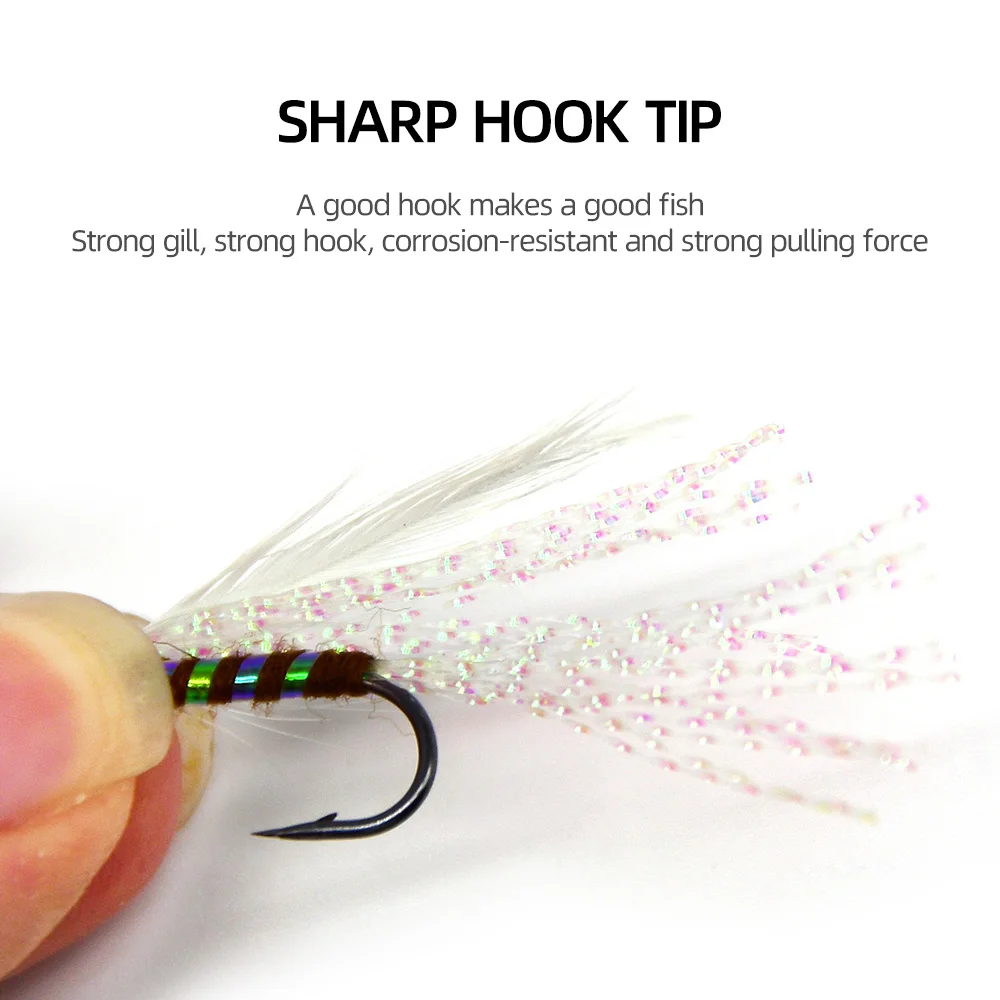 MNFT-cebos de pesca con mosca, 10 piezas, 6 #, blanco, arcoíris, cristal, Flash