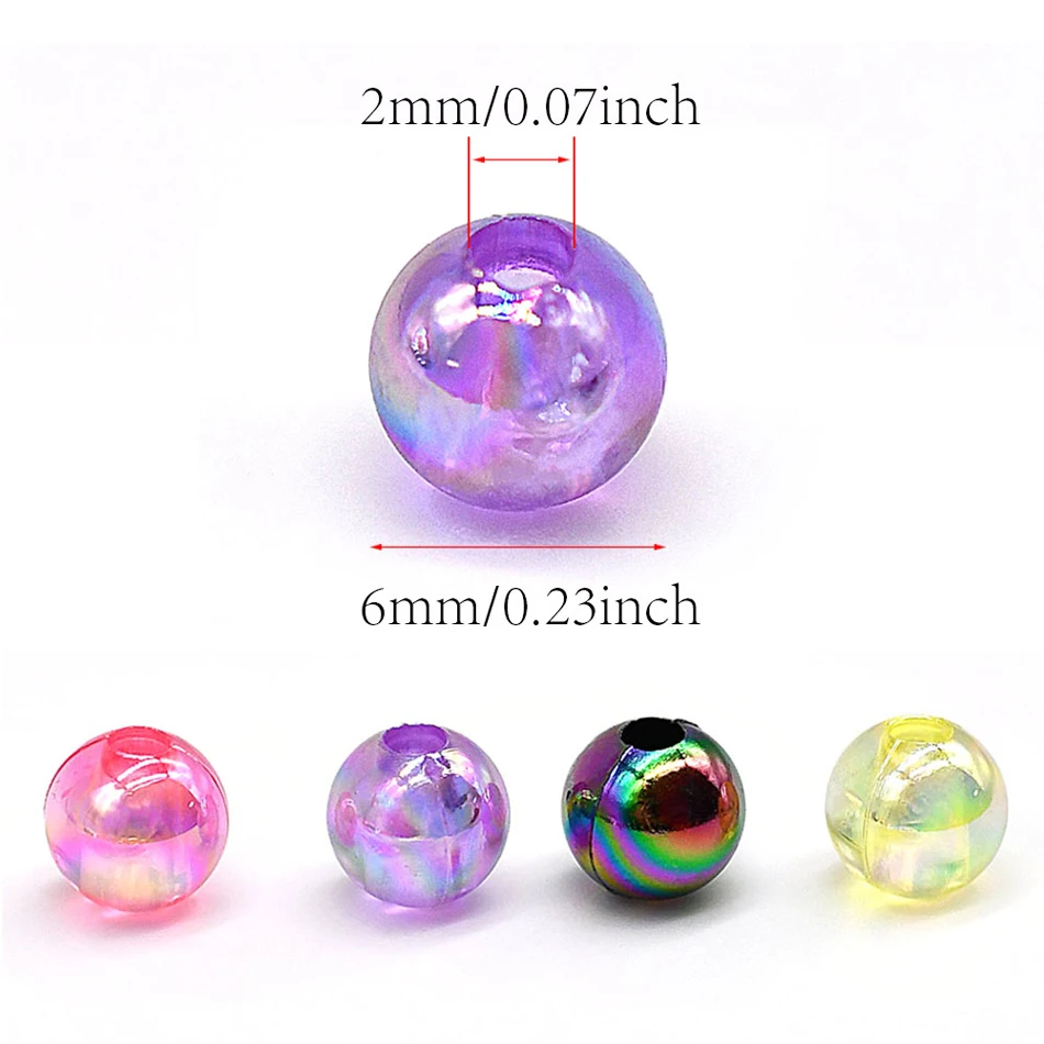 MNFT-Cuentas Unifishing para atar moscas, 200 piezas, 6MM, colores rosa, Morado, amarillo del Arcoíris