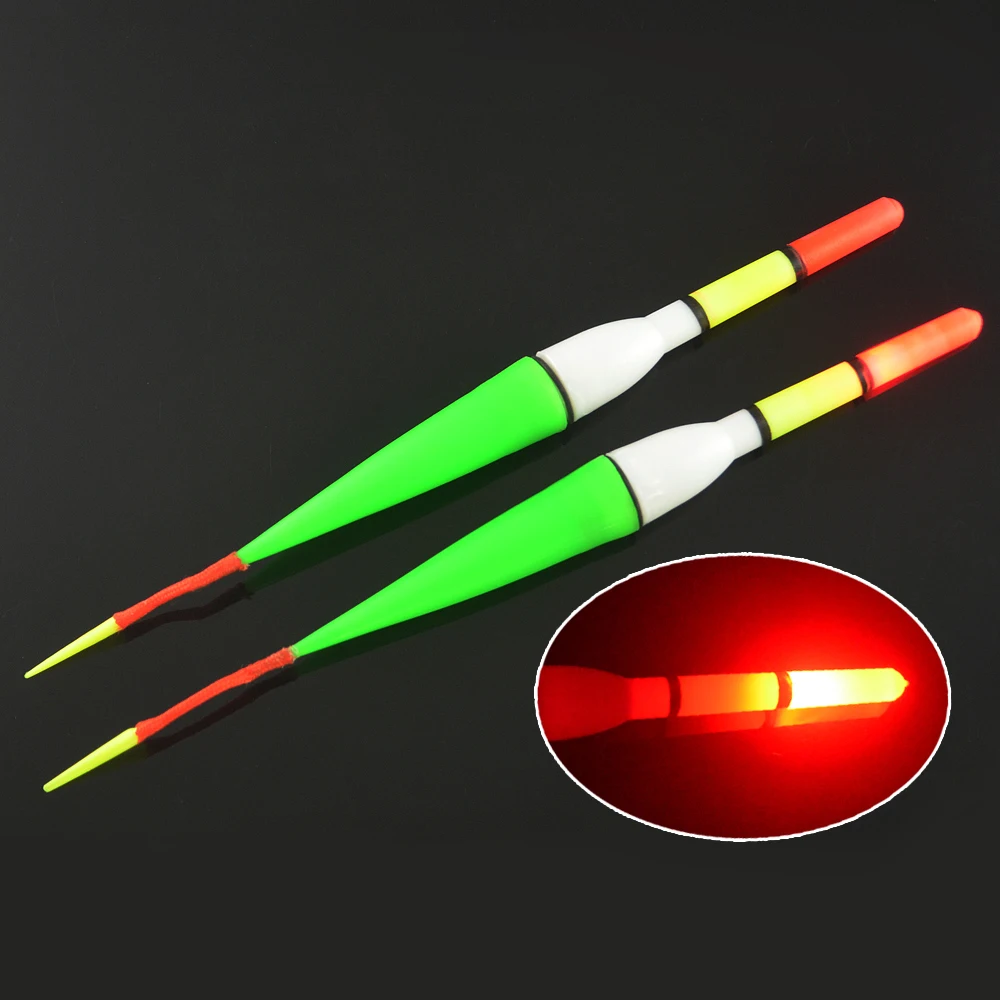 MNFT-flotador de plástico para pesca nocturna, boya roja intermitente, luz LED, resistente al agua, equipo electrónico flotante con batería, 2 uds.