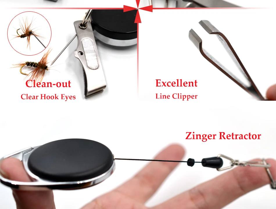 MNFT-Herramienta de nudo rápido para pesca con mosca, gancho rápido profesional, cortaúñas de líneas con Retractor Zinger opcional, varios estilos, 1 Juego