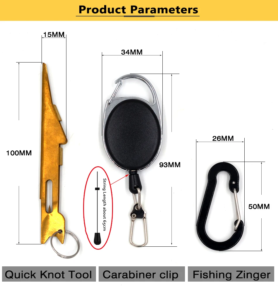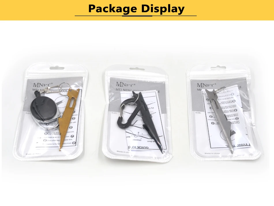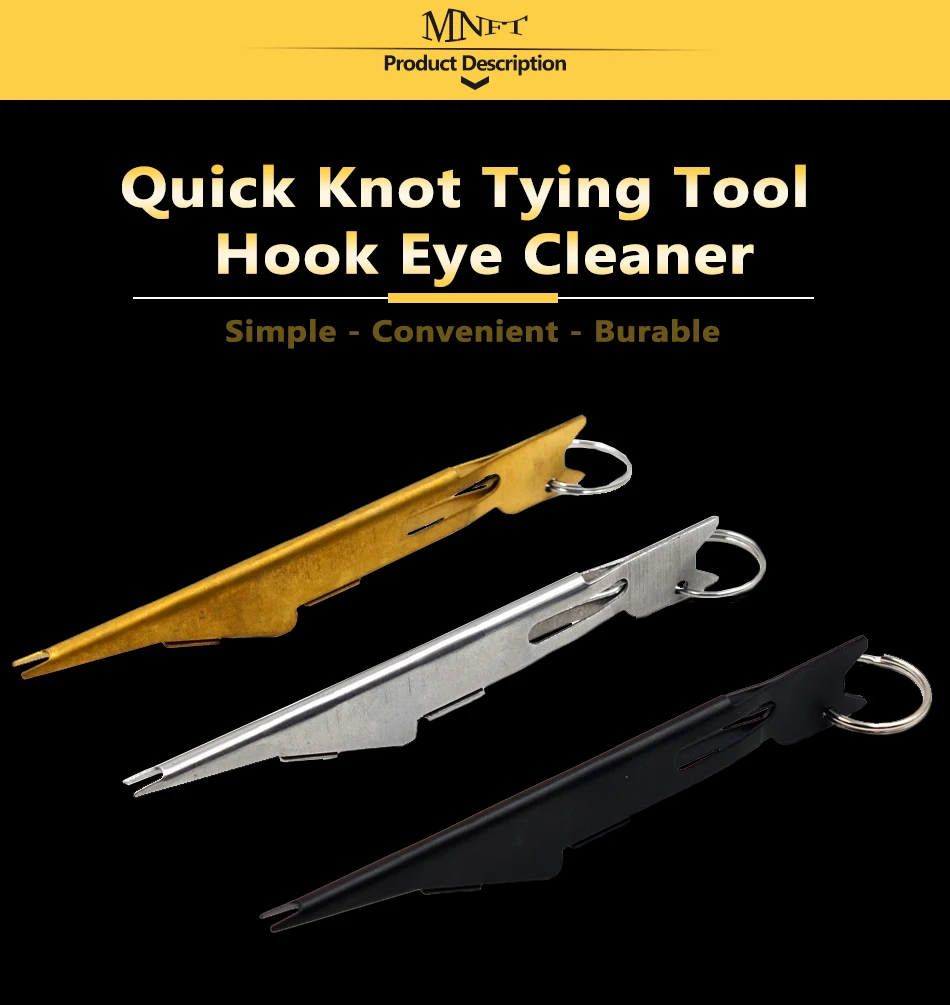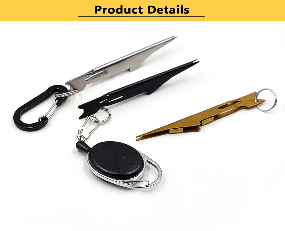 Descripción del producto:Herramienta de anudado rápido: para anudar rápidamente diferentes nudos de seguridadLos pescadores con mosca deben tener equipoEquipado con anillo en D para sujetar al cordón para un fácil accesoNo querrás pescar sin élAte toda su línea de vuelo con esta herramientaLimpia los agujeros de los ojos con la aguja incorporadaDescripción:Herramienta para atar nudos de uñasPara atar un nudo de uñas en una línea de moscaAte una serie de diferentes variedades de nudos de uñas segurosGancho limpiador ocular adjuntoHace un trabajo corto al atar el nudo de las uñasEspecificacionesNombre: Herramienta para atar nudos rápidosMaterial: MetalColor: plata, oro, negroLongitud: aproximadamente 10 cmPeso: 10gAccesorio: con anillo, fácil de llevarNombre: mosquetón clipMaterial: aleaciónColor: AleatorioTamaño: Longitud de extensión 50*25mmPeso: 5gNombre: Pesca ZingerMaterial: Cuerpo de plásticoTamaño: 9,5 cm * 3cmLongitud de la cuerda: 70cmPeso: 13GPaquete:1 x herramienta para atar nudos de metal o (1 x herramienta para atar nudos de metal + clip de mosquetón/1 x herramienta para atar nudos de metal + Retractor Zinger)Con instrucciones de paso en papel en el paquete