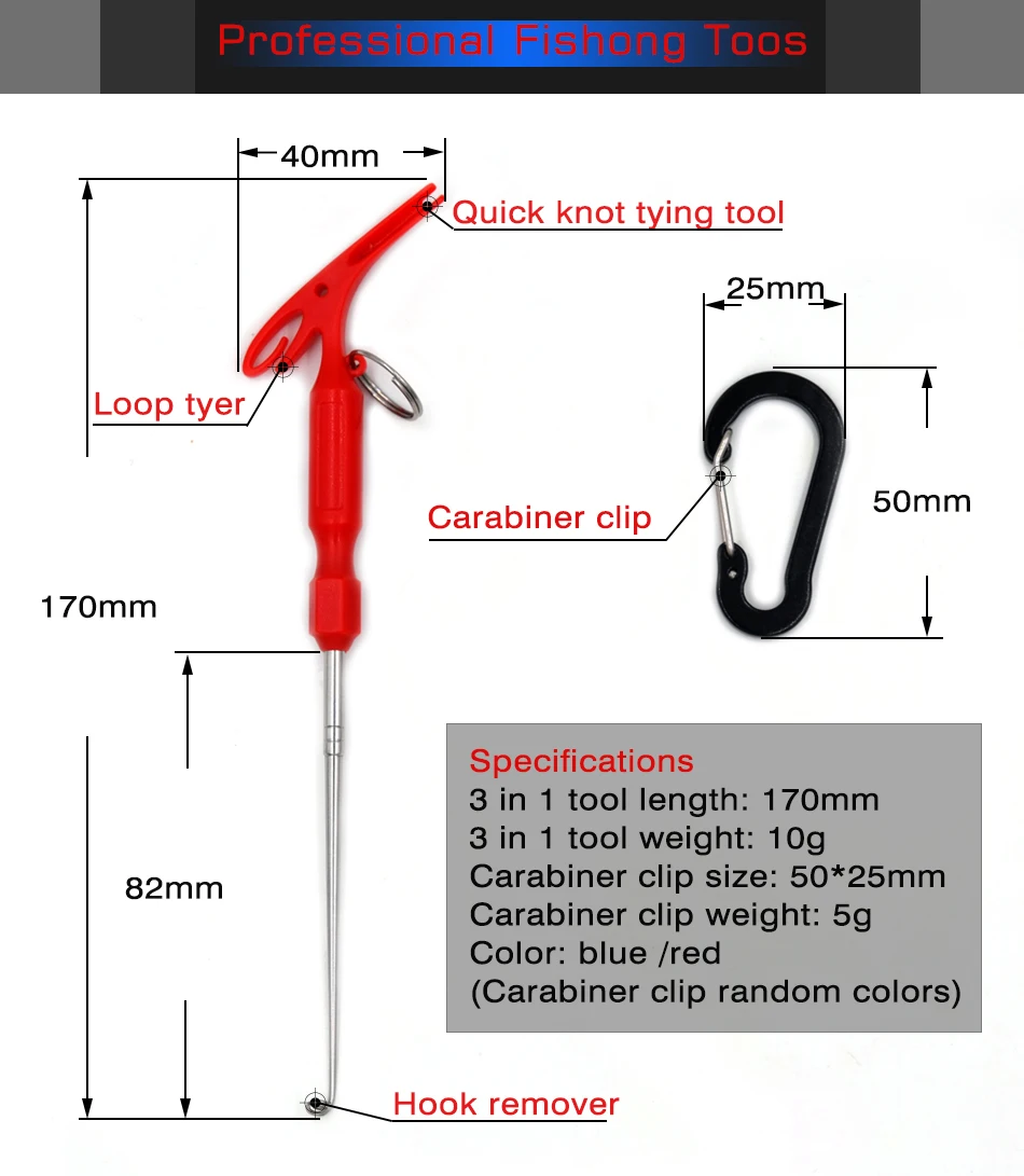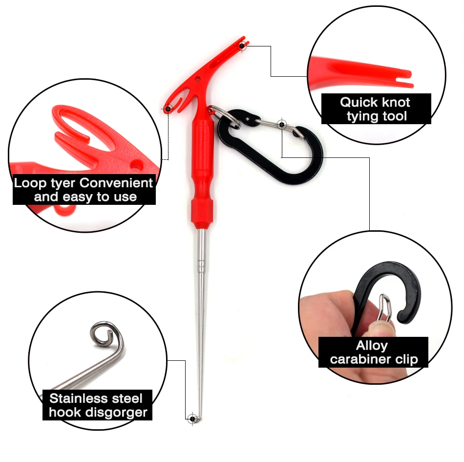 MNFT herramientas universales para atar nudos de uñas con mosca, removedor de anzuelos, lazo de atado rápido, herramienta Tyer y Clip de mosquetón