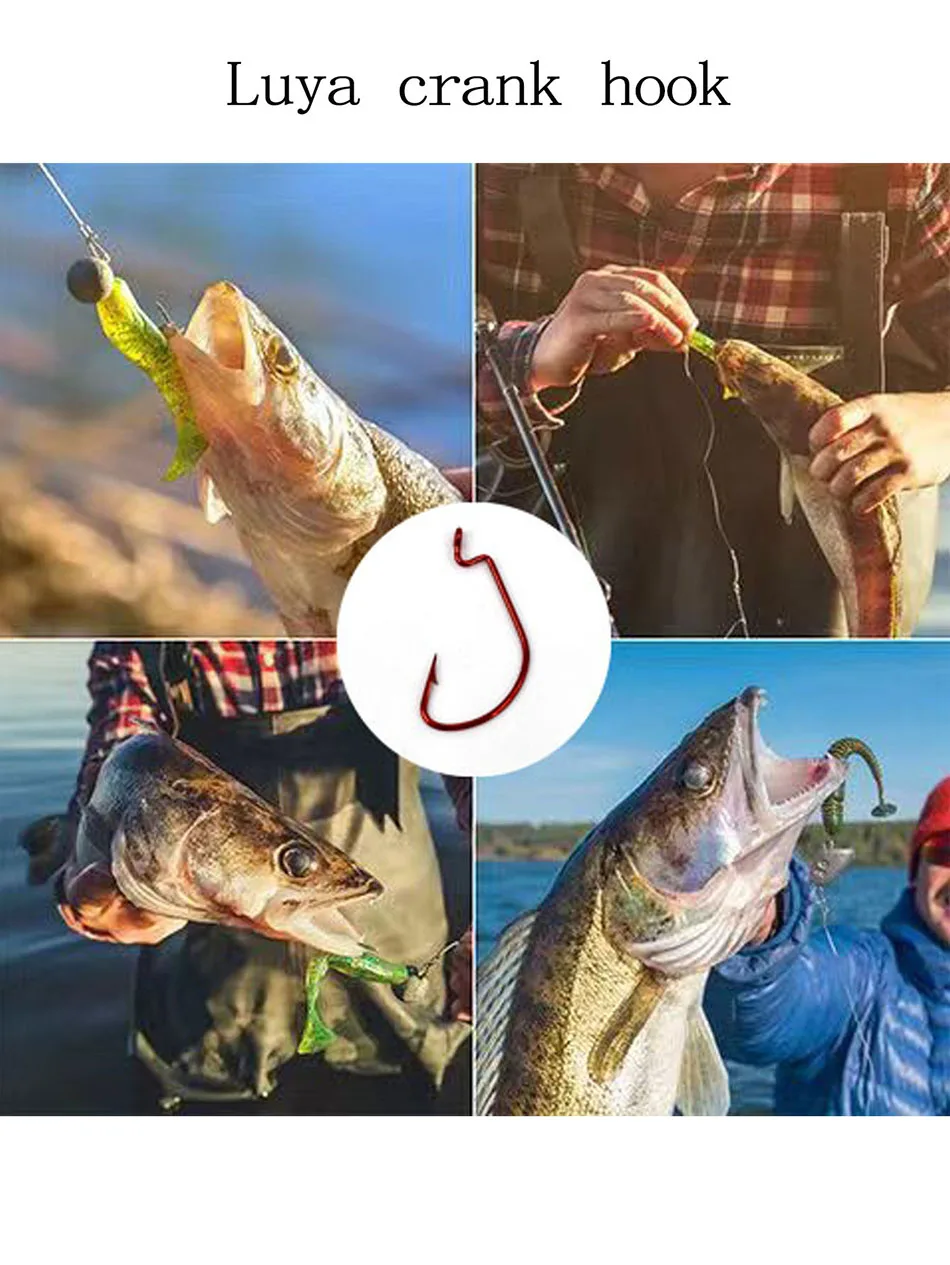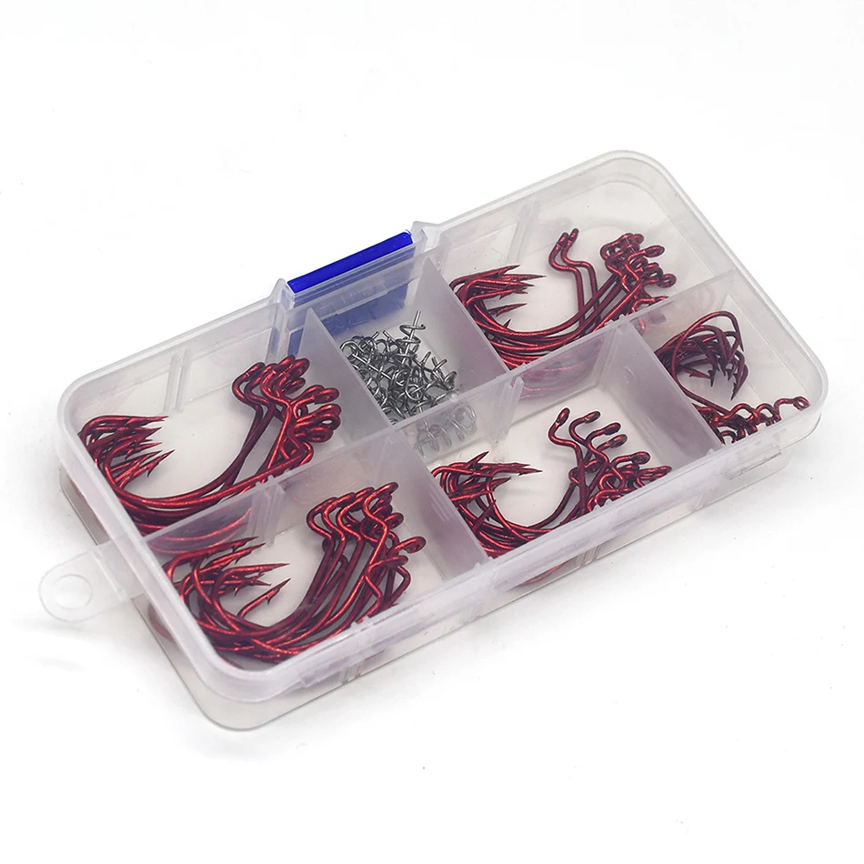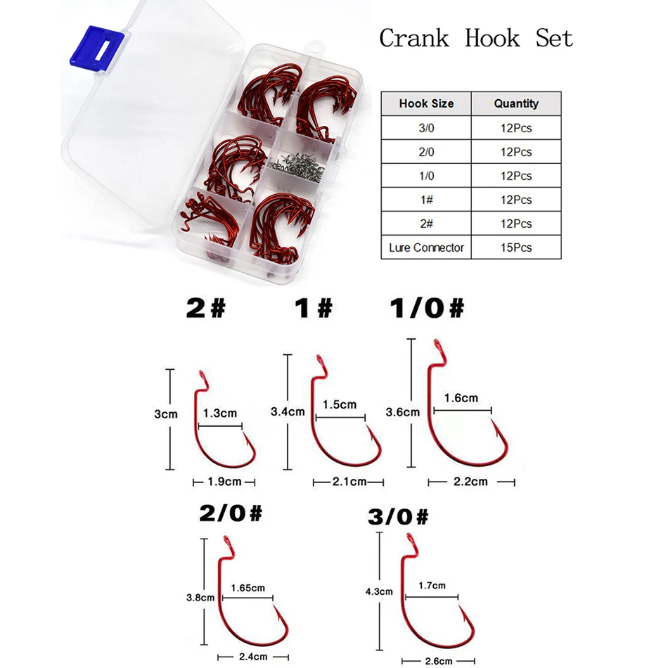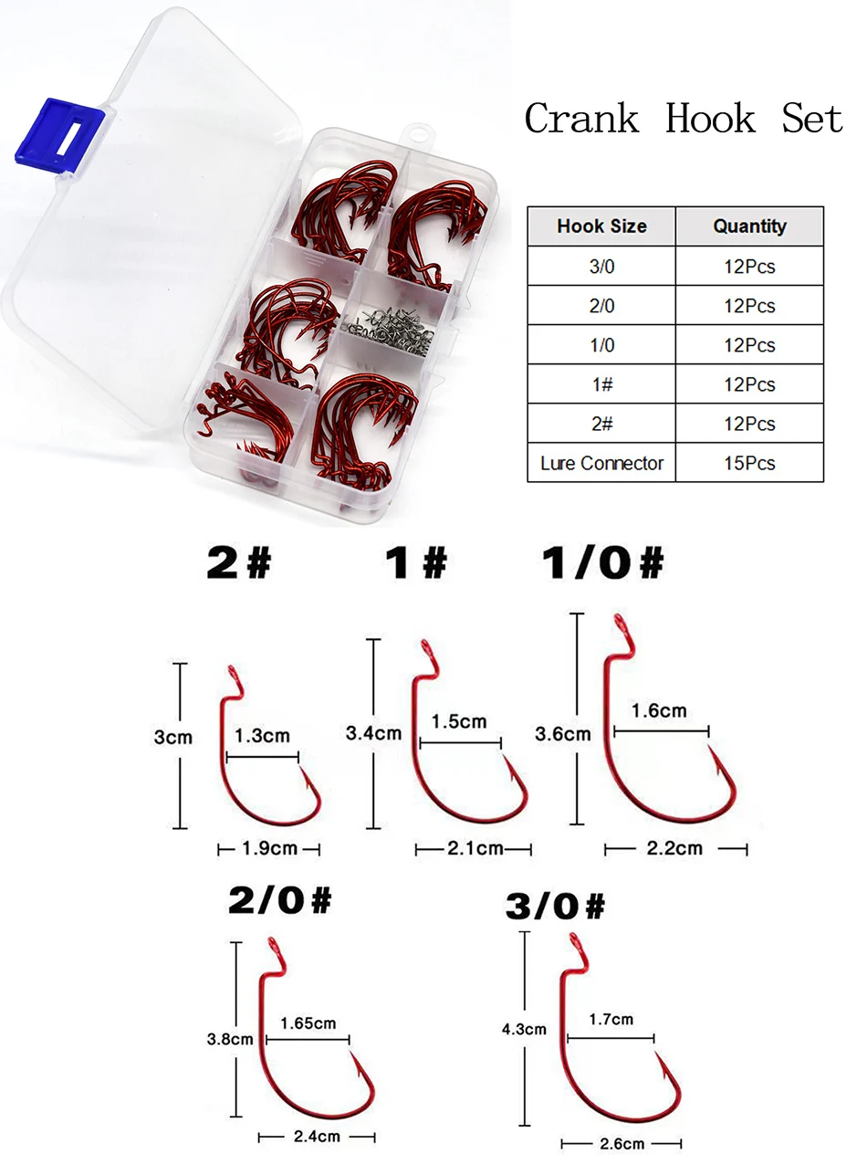 MNFT-Juego de anzuelos de manivela roja de 60 piezas, Conector de señuelo suave de 15 piezas, acero de alto carbono, tamaño 1 #2 #1/0 #2/0 #3/0 #
