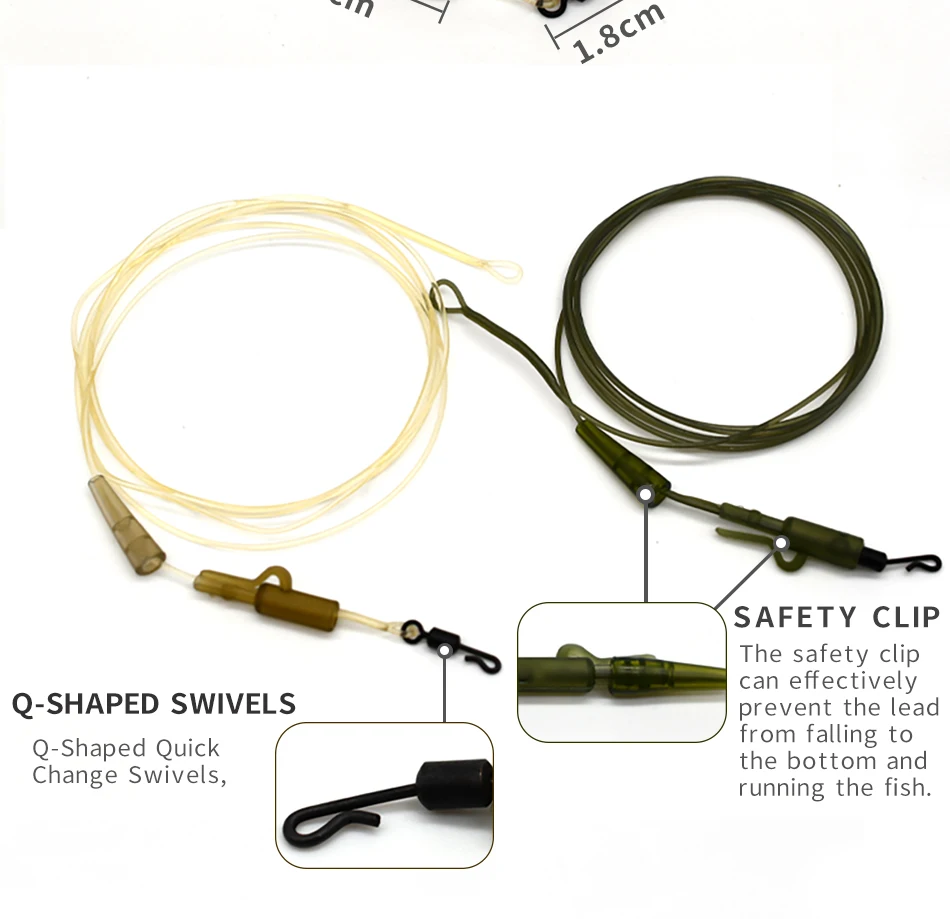 Especificación:Líderes de fluorocarbono de 100 cm de largo.De hundimiento rápido y prácticamente invisible en el agua.Acabado liso que los hace aptos para peces.Giratorio de cambio rápido con clip de seguridad ajustado.Longitud:Prueba: