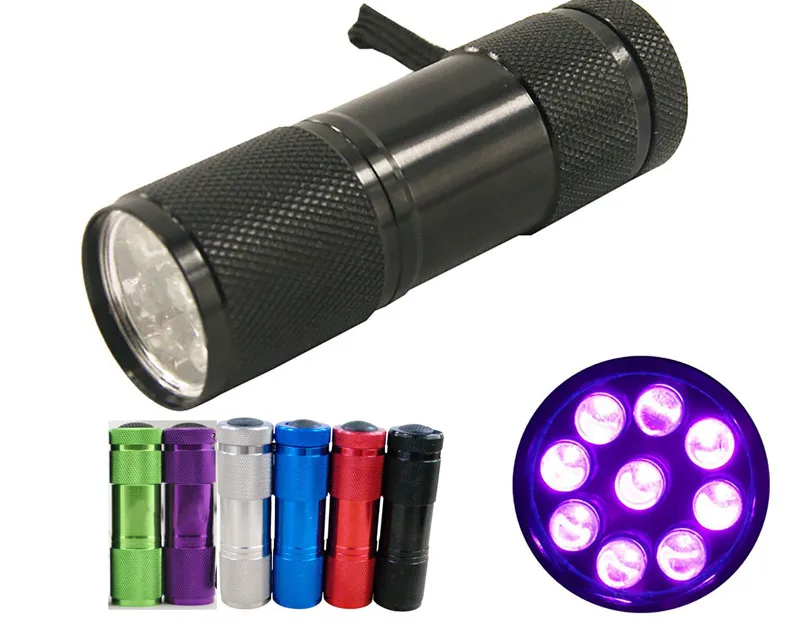 MNFT-Mini lámpara de luz ultravioleta portátil, linterna de 9 LED para atado de moscas, zumbador, ninfa, pegamento UV, curado, fabricación de moscas de pesca