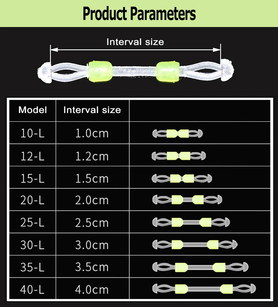 Características:Material de gel de sílice, fuerte fuerza de tracción, resistencia al desgaste y a la corrosión, firme y duradero. Anzuelos de pesca fáciles de separar. Fácil de operar, los dispositivos de derivación de sublínea de plástico de alta calidad son estables y duraderos. Especificación: Condición: 100% nuevo Material: gel de sílice Color: como se muestra en las imágenes. Opciones de tipo: 10L, 12L, 15L, 20L, 25L, 30L, 35L, 40L Dimensión de la distancia de separación: Aprox.10L-1CM, 12L-1,2CM, 15L-1.5CM, 20L-2CM, 25L-2CM, 30L-3CM, 35L-3,5CM, 40L-4CM Embalaje del producto: 12 Uds. x conector de pesca