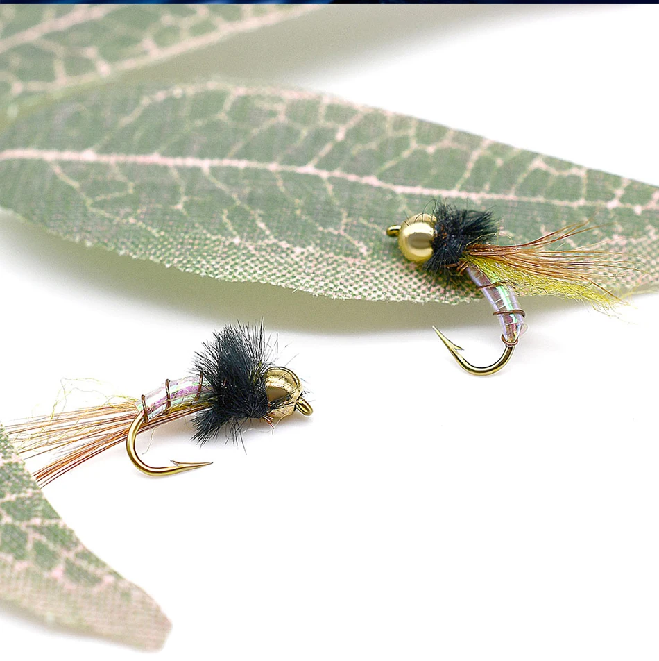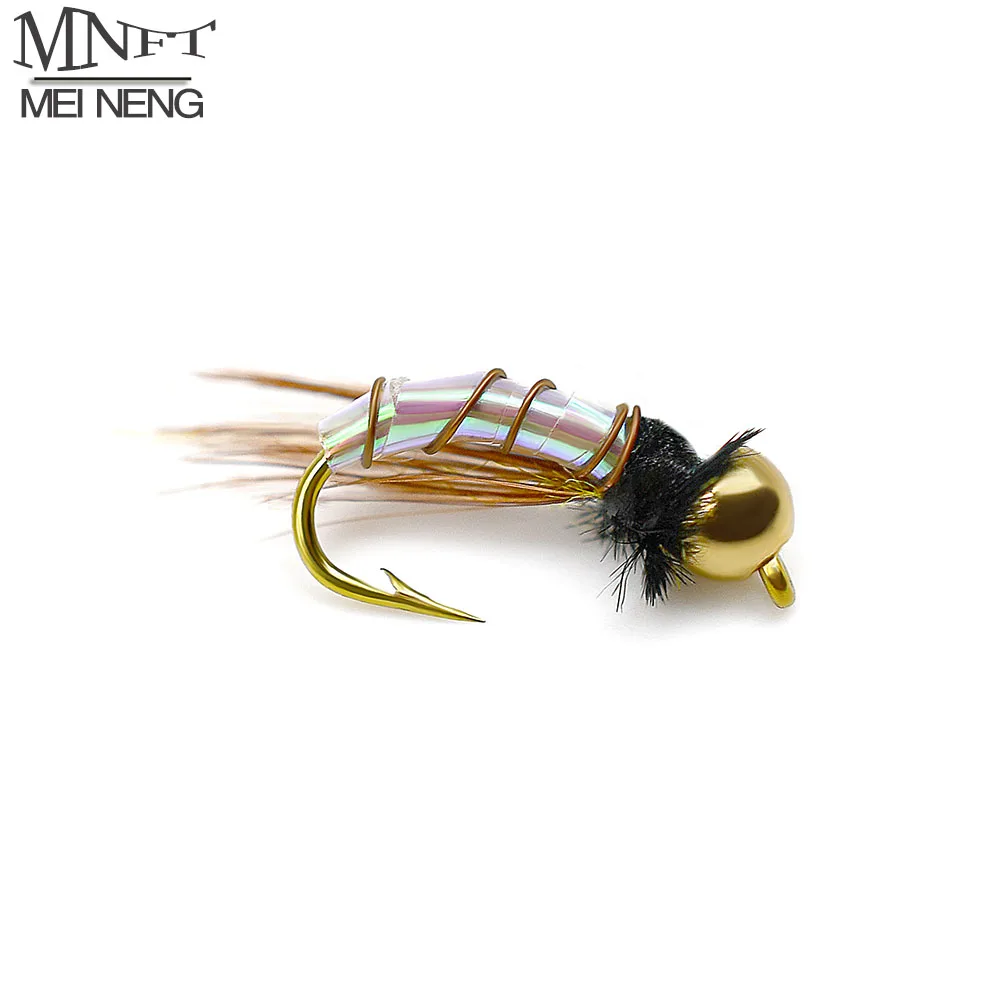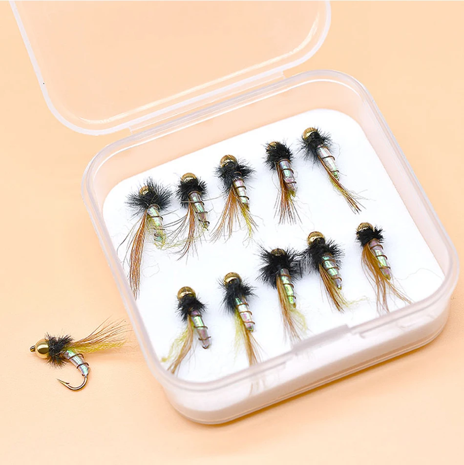 MNFT-señuelo holográfico para pesca, 10 piezas, cabeza de cuentas de latón, Midge, Mosca, trucha, moscas, ninfa, 12 #