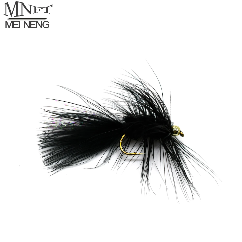MNFT-señuelo de pesca con mosca, cabeza dorada, Color negro, 10 piezas, 8 #