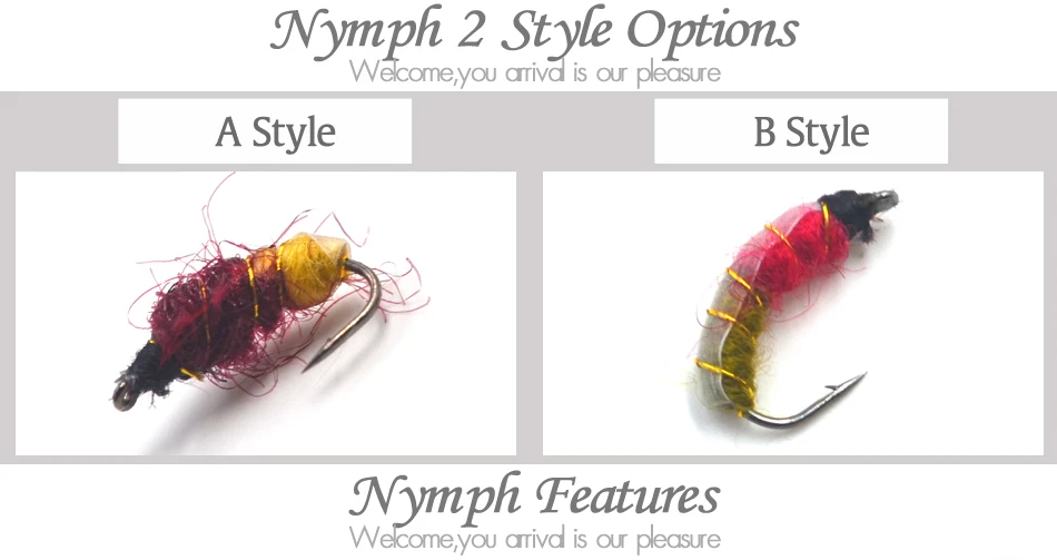 MNFT-señuelo de pesca con mosca, dos estilos, para Ninfa, trucha, Mosca, Mosca, Artificial, Pupa, Larva, ninfa, 10 Uds.