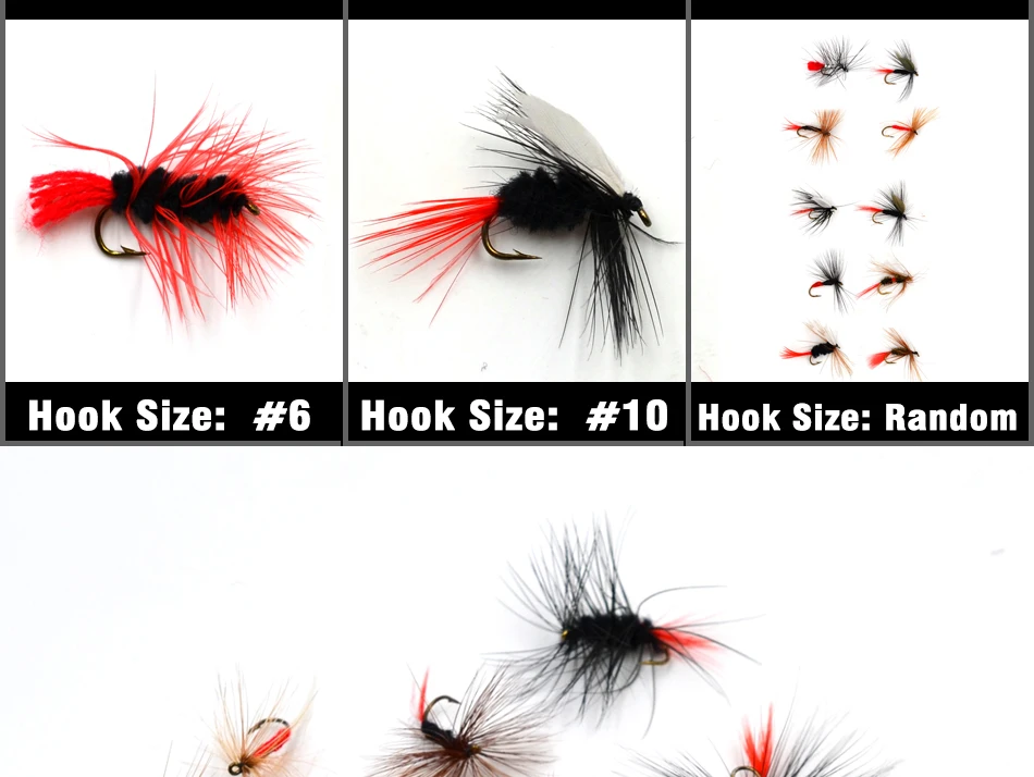 MNFT-señuelo de pesca con mosca seca, 10 piezas, varios tipos, trucha, salmón, moscas secas, anzuelo de pescado, tamaño #6 #10 #12, señuelos antimosquitos, aparejos de pesca