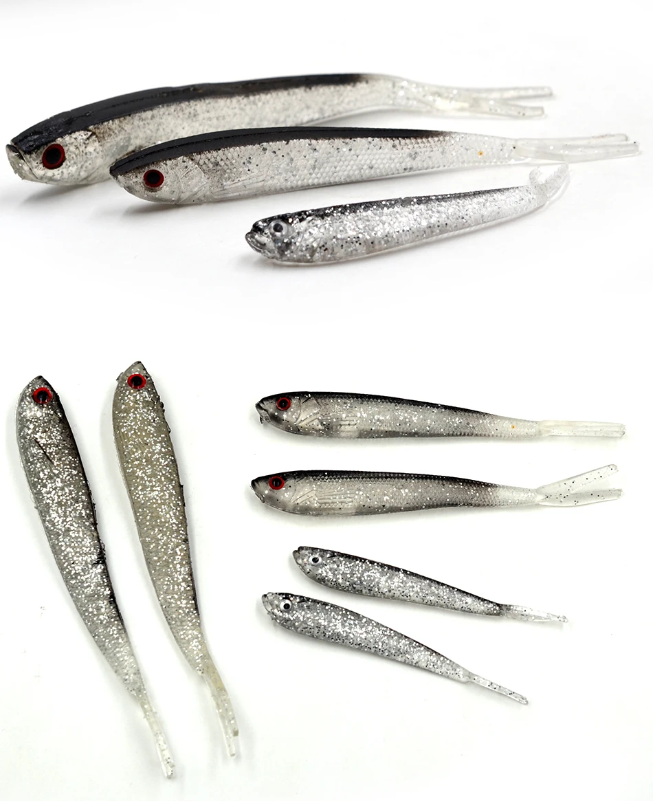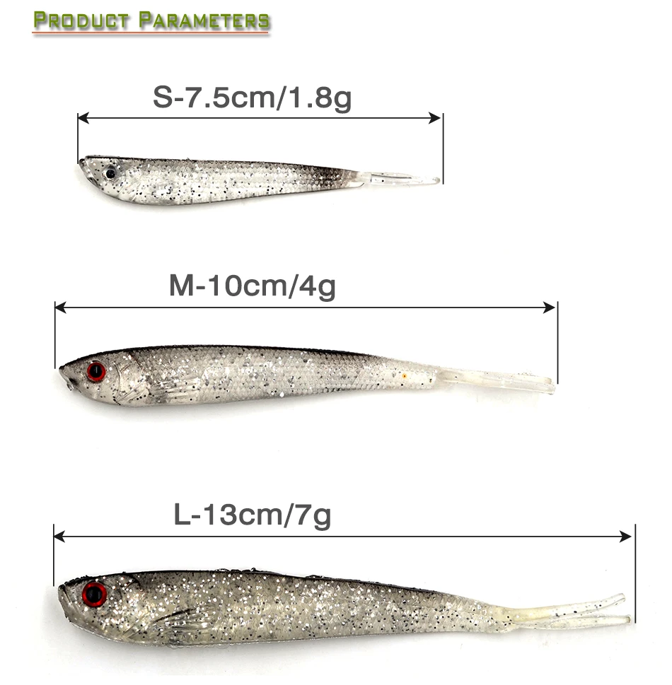 Características:Crea vibración armónica que dibuja peces activosImita el movimiento de peces pequeñosExcelente para dropshotting en aguas profundasAhora con detalles realistas, ojos 3D.Especificación:Material: Material de PVCLongitud: S-7.5cm/M-10cm/L-13cmPeso: S-1.8g/M-4g/L-7gColor: como muestra la imagenEl paquete incluye: 6 unids/packObservación: El color de los ojos 3D se enviará al azar.