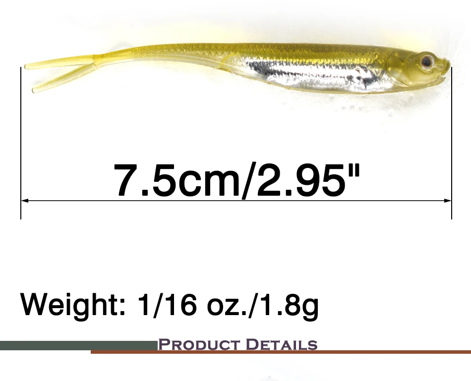 MNFT-señuelo de silicona suave para pesca, gusano de pesca, Swimbaits, paleta de cola de sábalo, paleta de pececillo, 7,5 cm, 1,8g