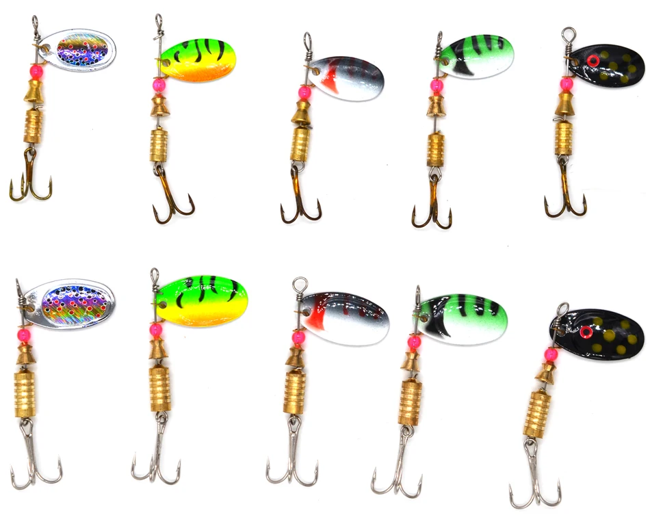 MNFT-Señuelos de pesca giratorios, 10 Uds., Wobblers, cebos de manivela, cuchara de Metal, 3,5g, 5,5g, anzuelos, señuelo de pesca de mar con lentejuelas