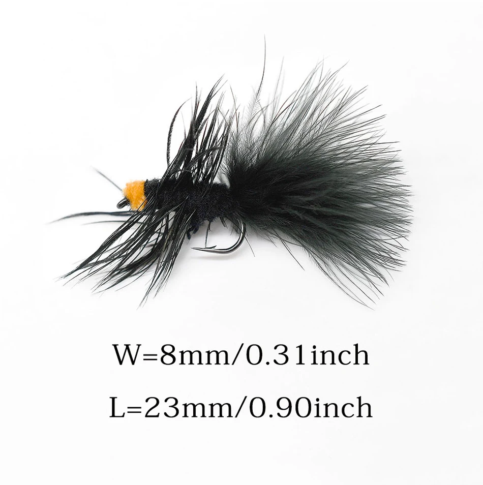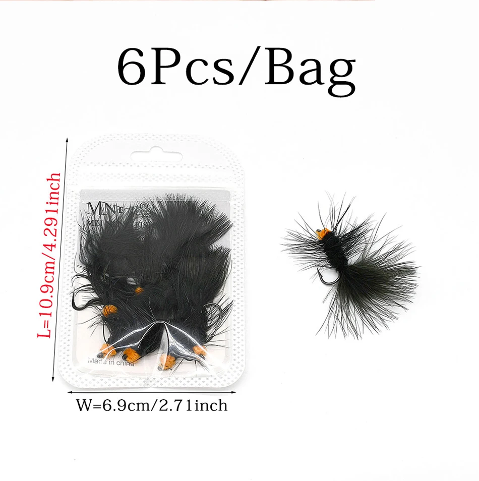 MNFT-SEÑUELOS DE pesca con mosca, 6 piezas, Wooly, serpentinas de insectos, anzuelo de atado de moscas de agua salada, trucha, cebo de moscas