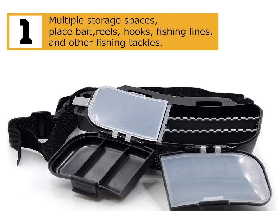 MNFT-señuelos de pesca multifuncionales, caja de aparejos, cucharas, ganchos, carretes, herramienta de almacenamiento, caja de cintura, cajas portátiles para cebo de pescado, 1 Juego