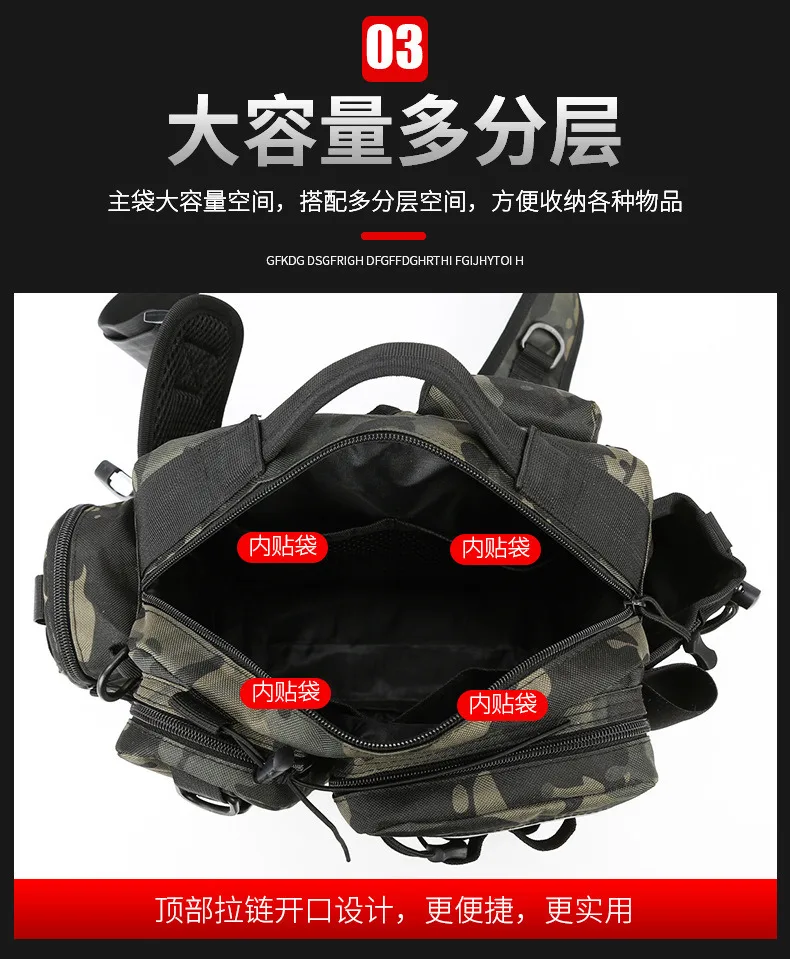 2. Bolsa de aparejos de pesca de diseño innovador: puede usar la bolsa de aparejos para una variedad de propósitos, como una bandolera, bolsa de caza, bolsa de senderismo, bolsa de viaje, bolsa de caja de aparejos, bolsa de camping, etc.