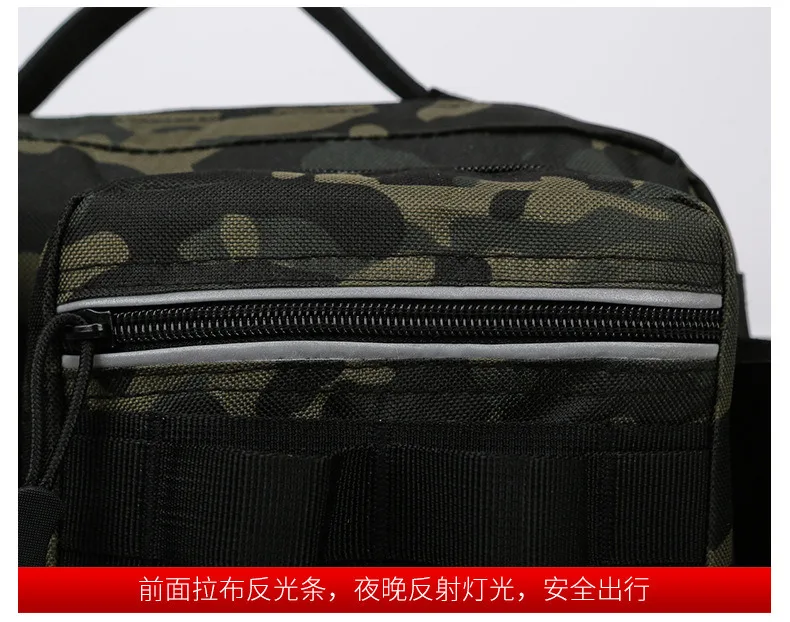 4. Tira reflectante: rayas reflectantes en la parte delantera de la mochila, mejorando efectivamente la seguridad de los viajes nocturnos y la pesca.