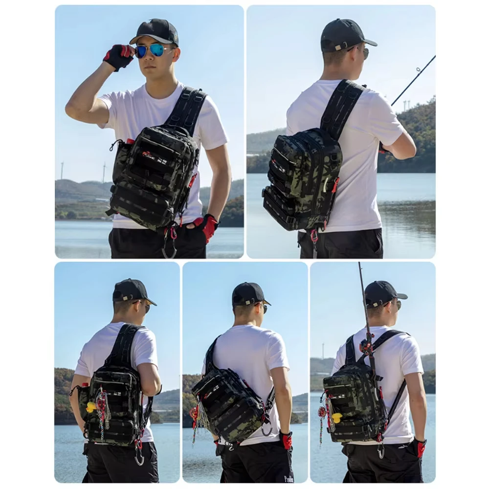 Bolso de hombro táctico para exteriores, mochila de almacenamiento multifuncional de gran capacidad, bolso de viaje informal para pesca para hombres