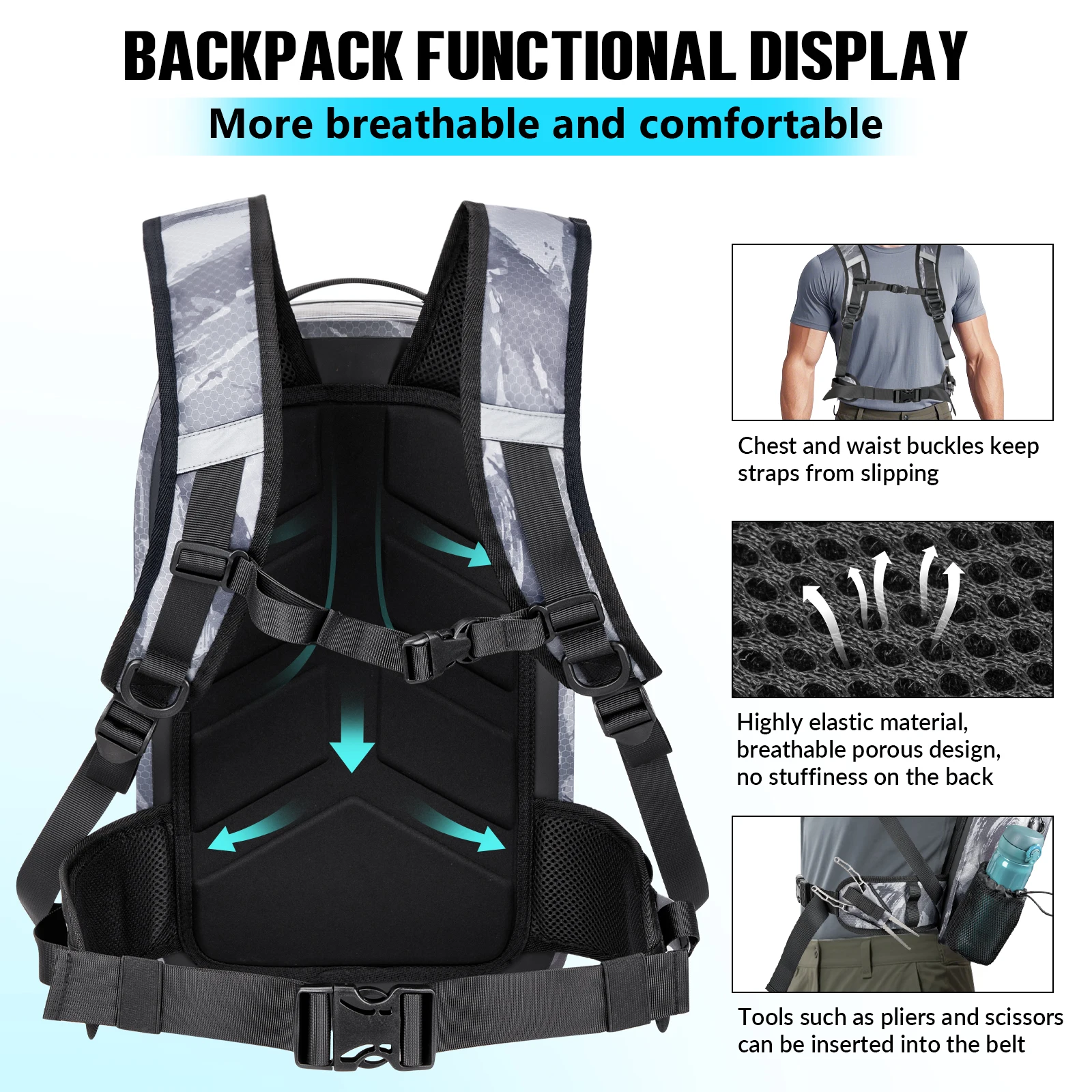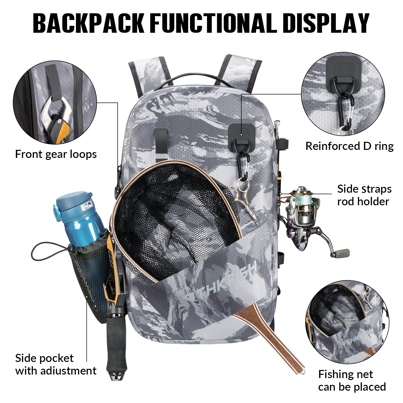 Mochila para aparejos de pesca THKFISH, bolso de hombro impermeable de gran capacidad para pesca, mochilas para pesca con mosca, bolsas para senderismo al aire libre