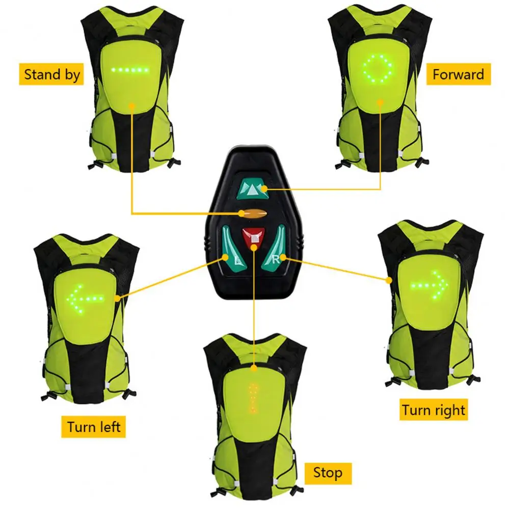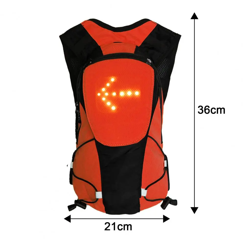 Equipada con un panel de señal de giro LED recargable por USB, esta mochila proporciona una forma conveniente de alertar a peatones, conductores y ciclistas de su presencia.El controlador inalámbrico ofrece 4 modos de señal: izquierda, derecha, adelante y parada, lo que le permite comunicar sus intenciones sin esfuerzo.Monte el controlador en el manillar para acceder fácilmente mientras viaja.
