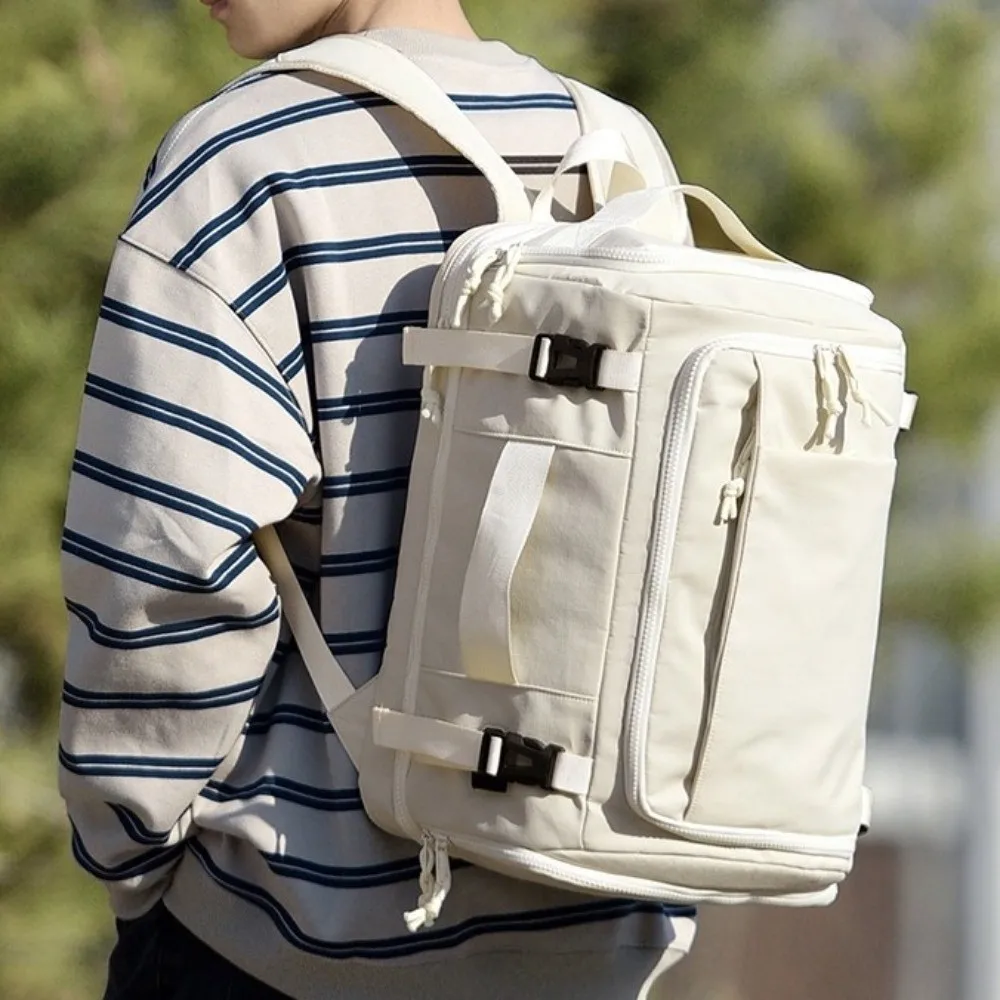 1.28-38L expandable backpack with separate shoe compartment, wet/dry pocket and separate computer pocket on the back.