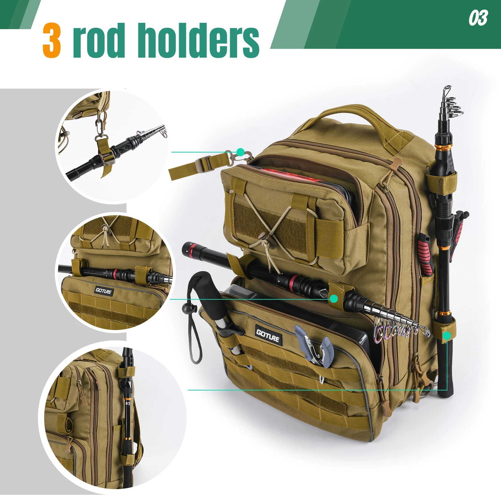 4.Detalles diferenciados: diseño de correa de varilla lateral, bolsa para taza de agua antidump, diseño de rejilla Moore