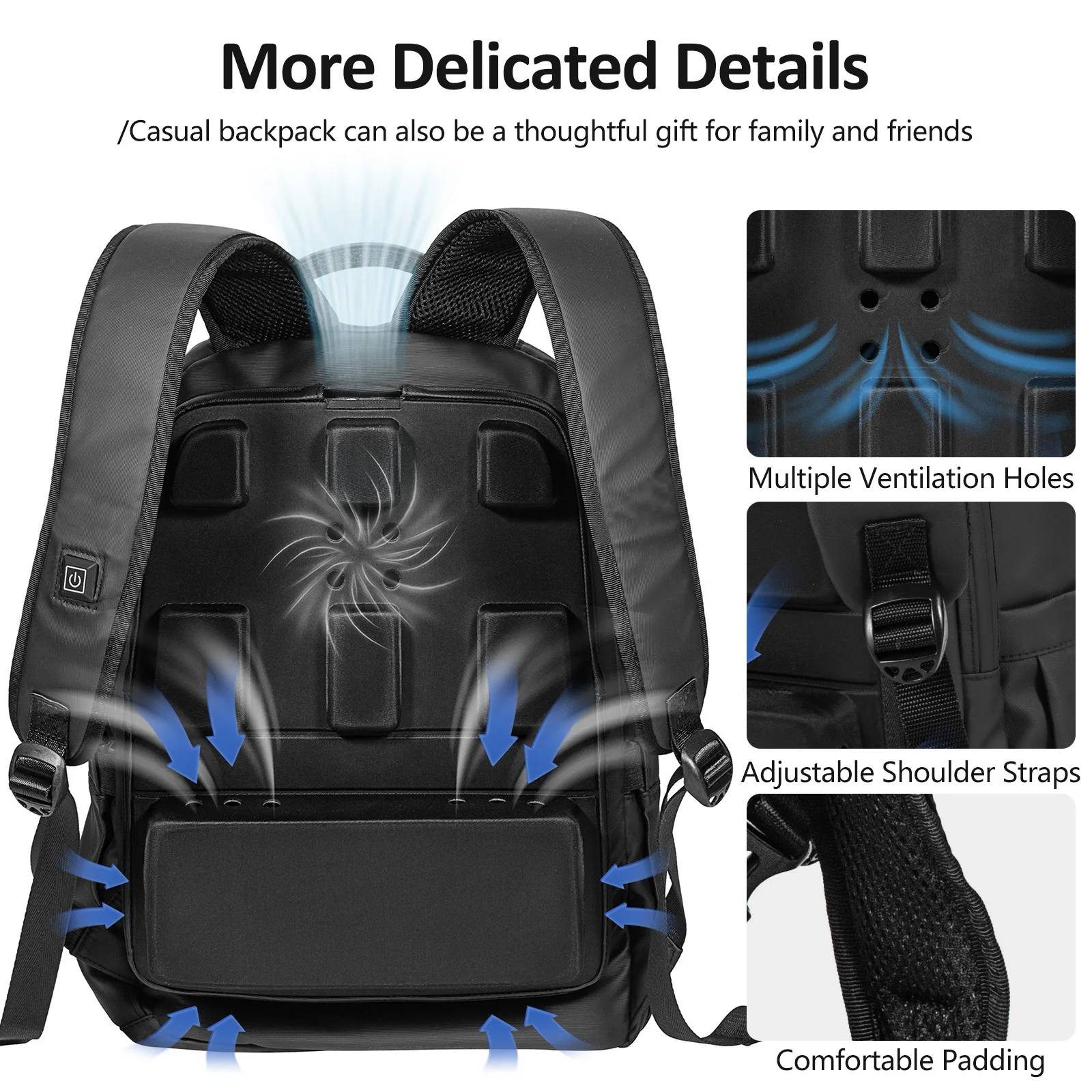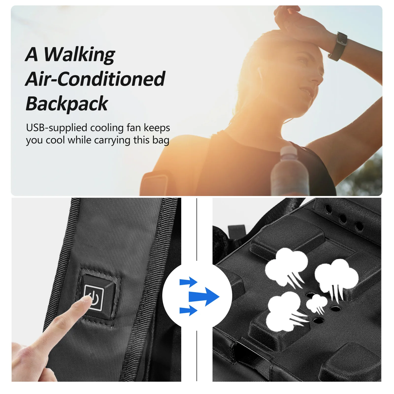 Diseño amigable para el cliente: con un ventilador de refrigeración incorporado alimentado por USB, conéctelo a un dispositivo de Alimentación de 5V 2A y mantenga presionado el botón de encendido. Ajuste de viento de 3 marchas, puede elegir según sus necesidades, convirtiendo su mochila en un ventilador para caminar.