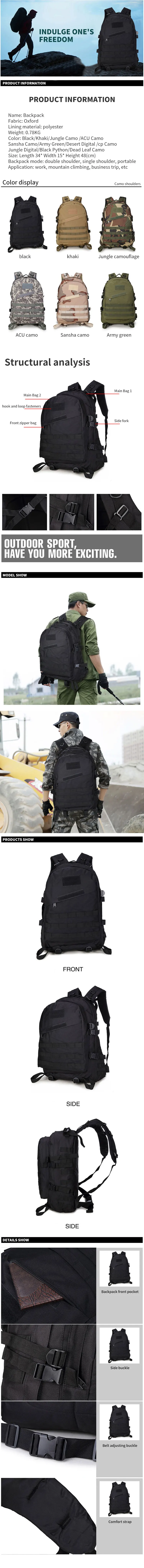 Mochila militar para deportes al aire libre, morral táctico para escalada, Camping, senderismo, Trekking, bolsa militar de viaje, 55L 3D