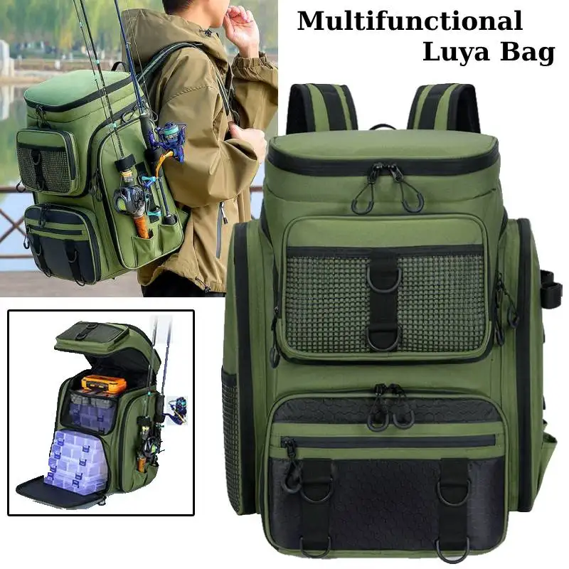 Bolsa de pesca LUYA para exteriores, gran capacidad, multicompartimento, impermeable, resistente al desgaste, tela Oxford, bolso de hombro Migratory para senderismo