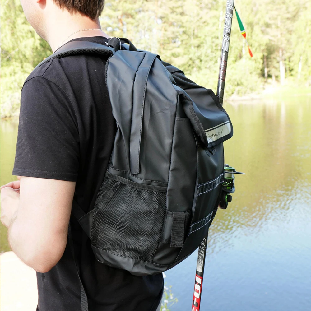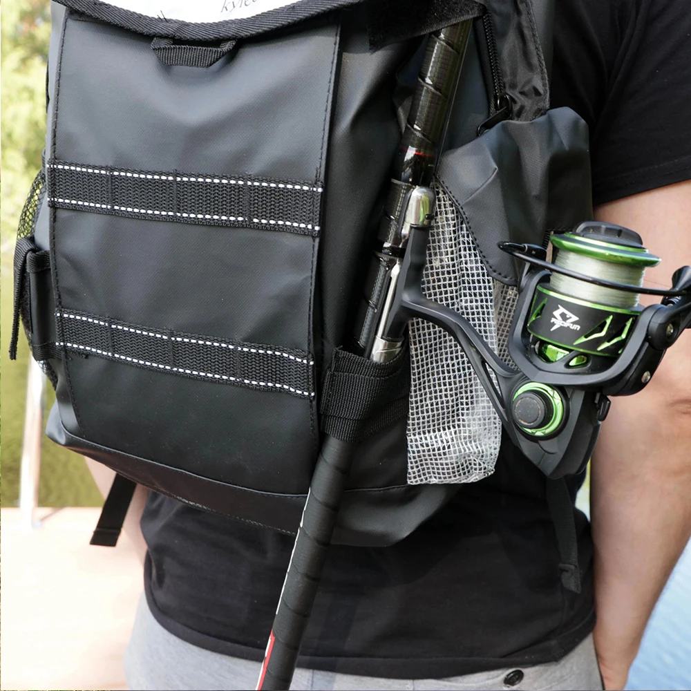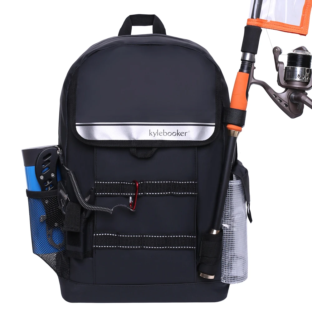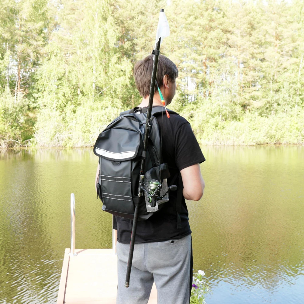 Mochila de pesca, bolsa de almacenamiento de aparejos con soportes para caña, trucha, deportes al aire libre, Camping y senderismo