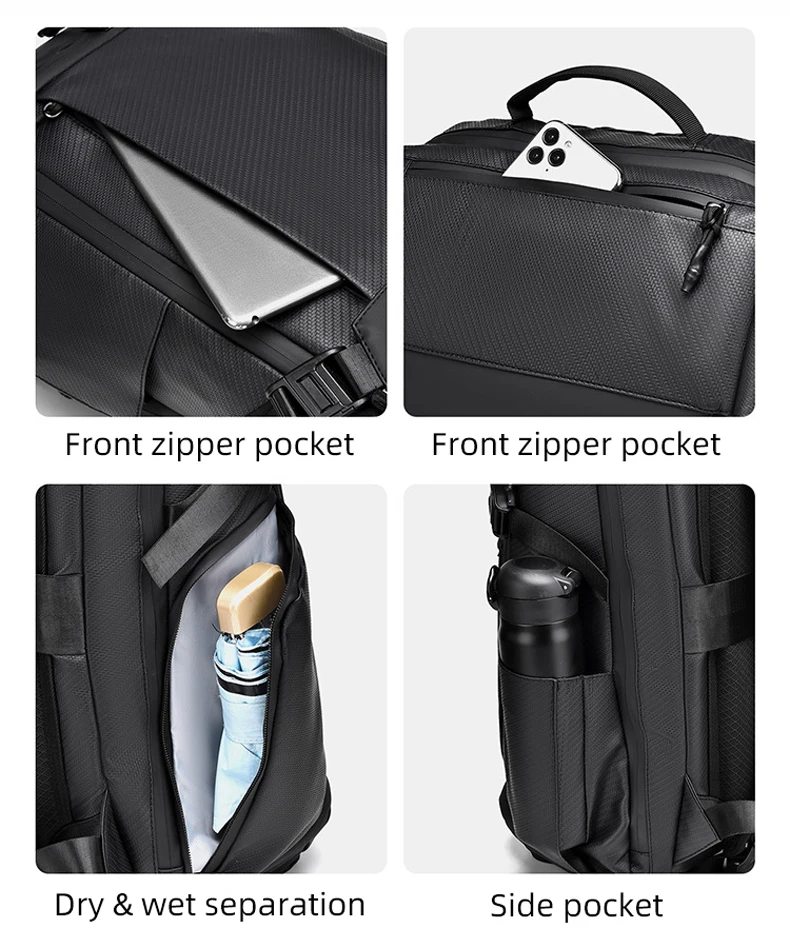 5.Bolsa de separación lateral seca y húmeda, puede contener toallas, paraguas y otros artículos.