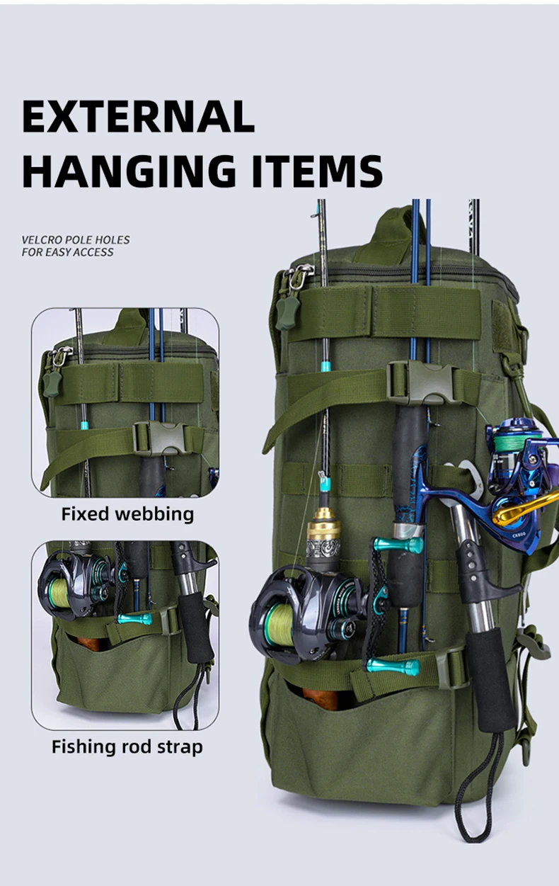 Mochila táctica para caña de pescar, bolso de hombro con señuelo Molle de pesca multifuncional, bolso grande para viajes al aire libre, senderismo, caza