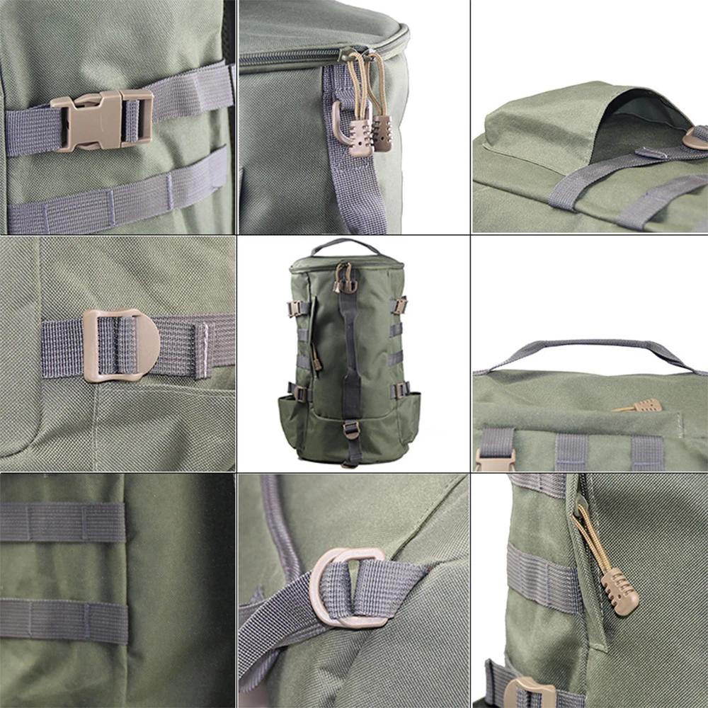 Esta mochila de pesca tiene una capacidad súper grande: espacioso compartimento principal con cremallera para valiosos aparejos de pesca, bolsillo frontal para artículos pequeños;dos bolsillos laterales para cañas de pescar, correas Molle y anillo en D para colgar accesorios: cada aparejo de pesca puede encontrar su propio lugar.La mochila se puede llevar en muchos estilos: llevar en la mano con asas;Úselo como bolso de hombro individual o cruzado con la correa de hombro ajustable extraíble;Úselo como mochila con las dos correas anchas para los hombros, muy conveniente y práctico, gran regalo para cualquier pescador que vaya desde principiantes hasta profesionales.
