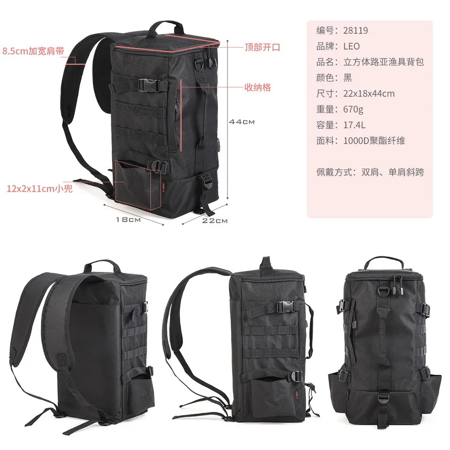 Mochila de pesca multifuncional para hombre, bolso de hombro tipo Bombonera Oxford impermeable, mochila portátil para almacenamiento de caña de pescar al aire libre, aparejos