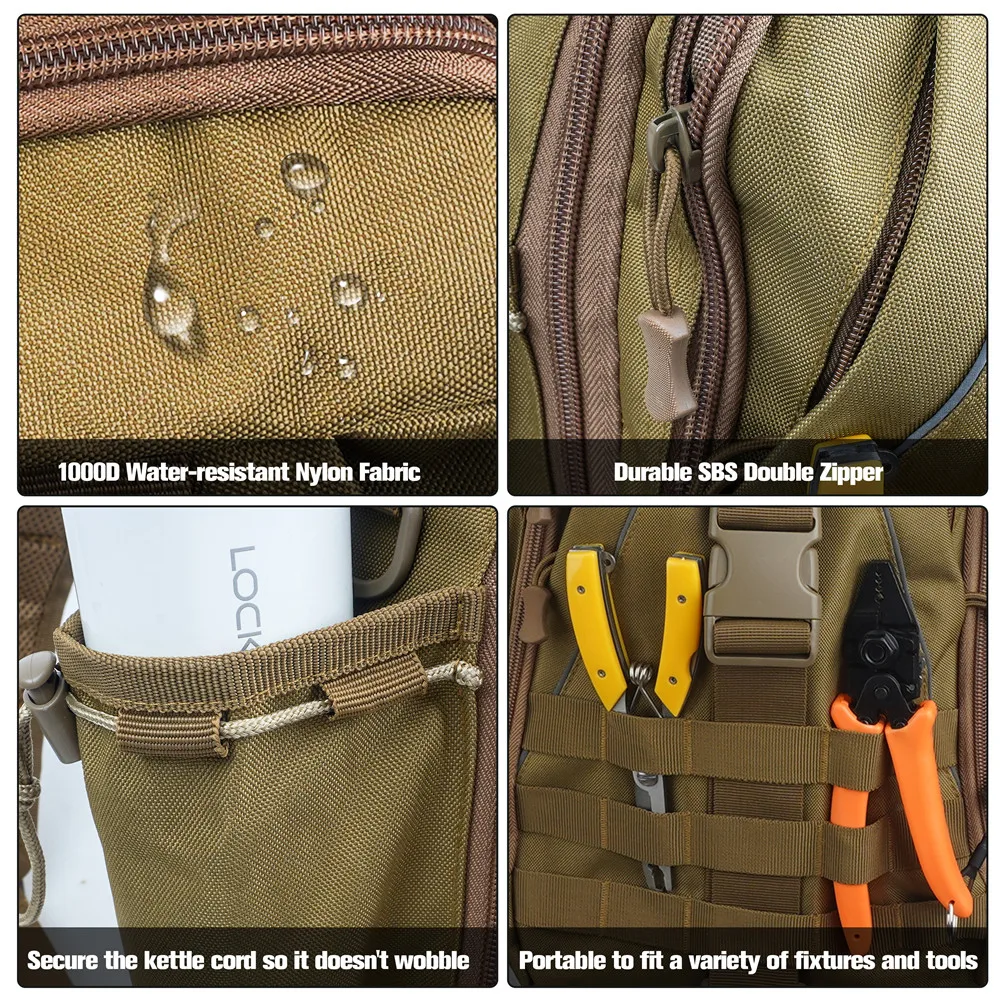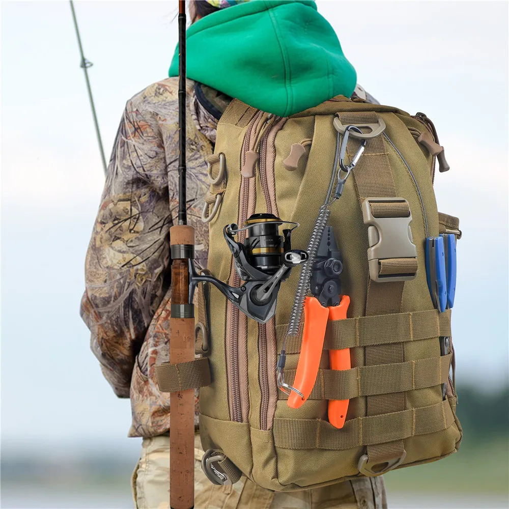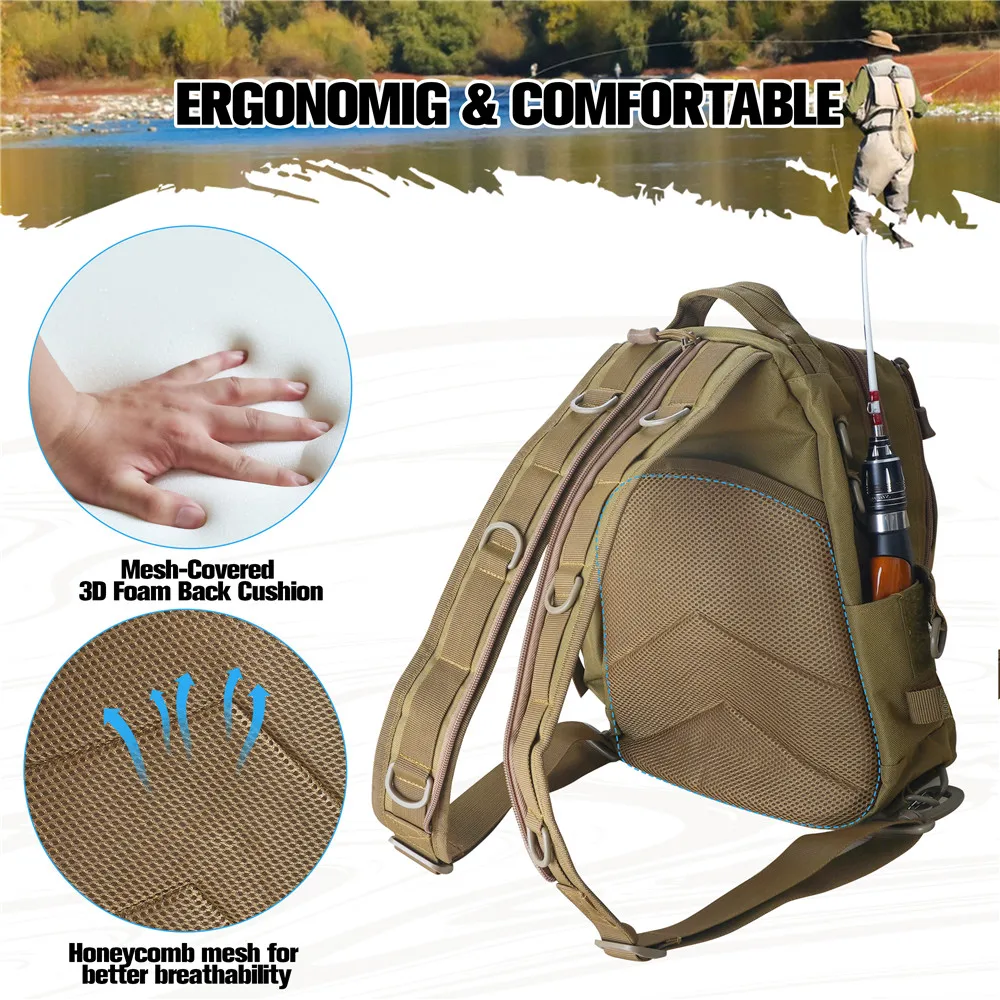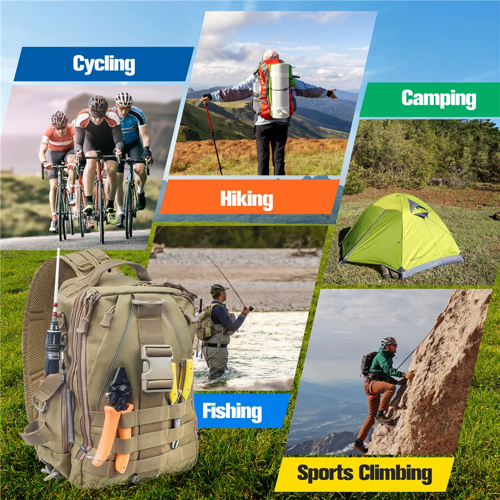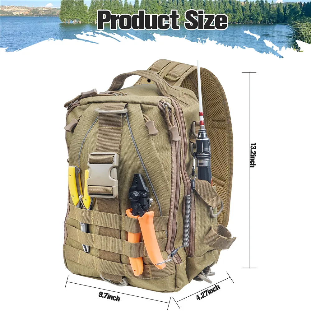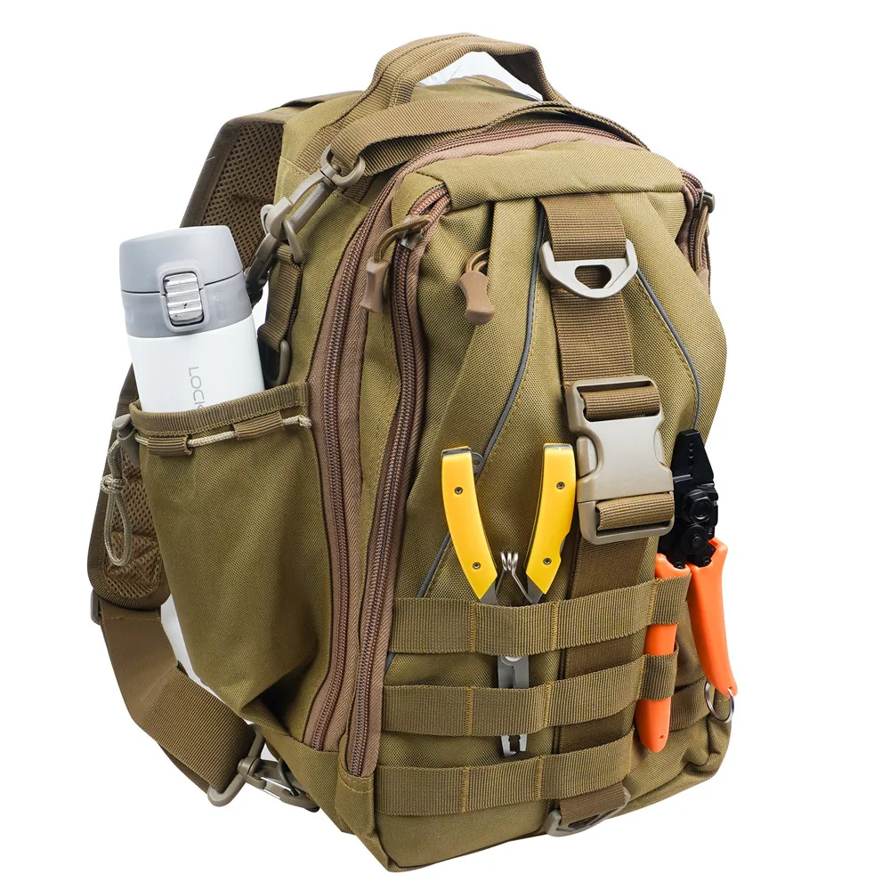 1. Hecha de nailon 1000D de alta densidad y con correas ajustables para los hombros, esta mochila resistente al agua se puede utilizar como mochila, bandolera, mochila de pecho, bolso de mano, bolsa de aparejos de pesca, o bolsa de viaje.