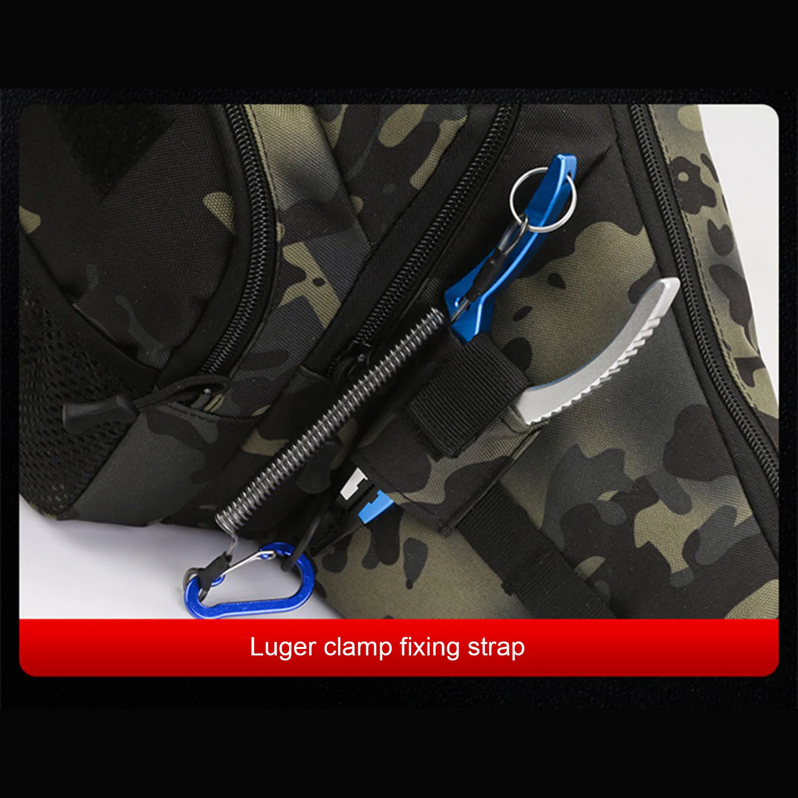 Construcción duradera: fabricada con materiales resistentes al agua, esta mochila de pesca ligera con eslinga garantiza que su equipo se mantenga seguro y seco durante las aventuras al aire libre, proporcionando una durabilidad duradera para todos sus viajes de pesca.