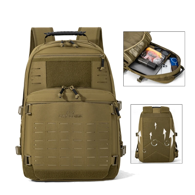 1.Equipada con un sistema Molle táctico, esta mochila permite una fácil fijación de equipo adicional.