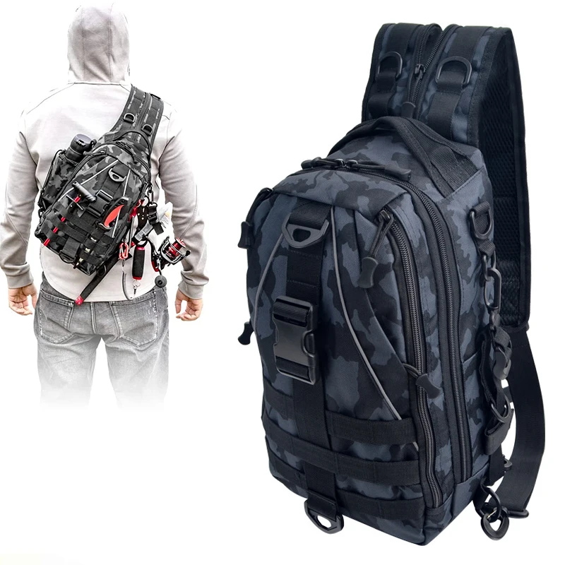 Mochila de pesca con soporte para caña, bolso de hombro multifunción, herramientas de caña de pescar al aire libre, bolsa de aparejos de pesca