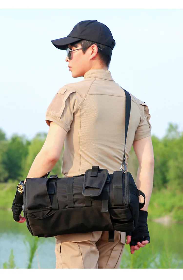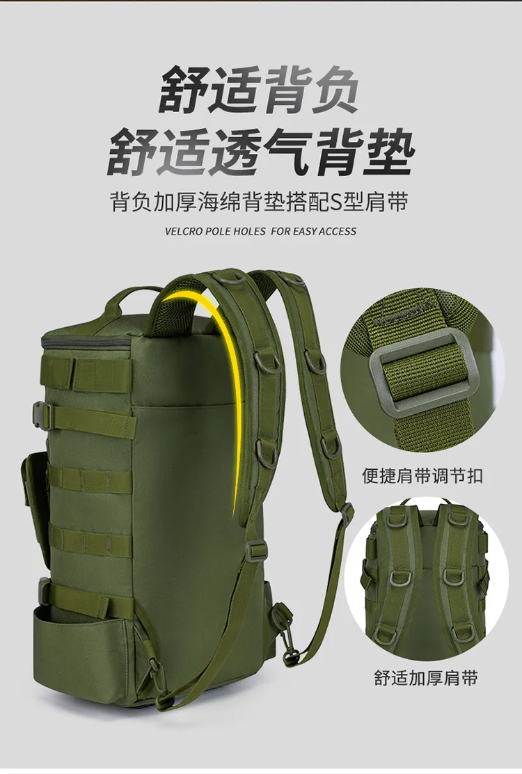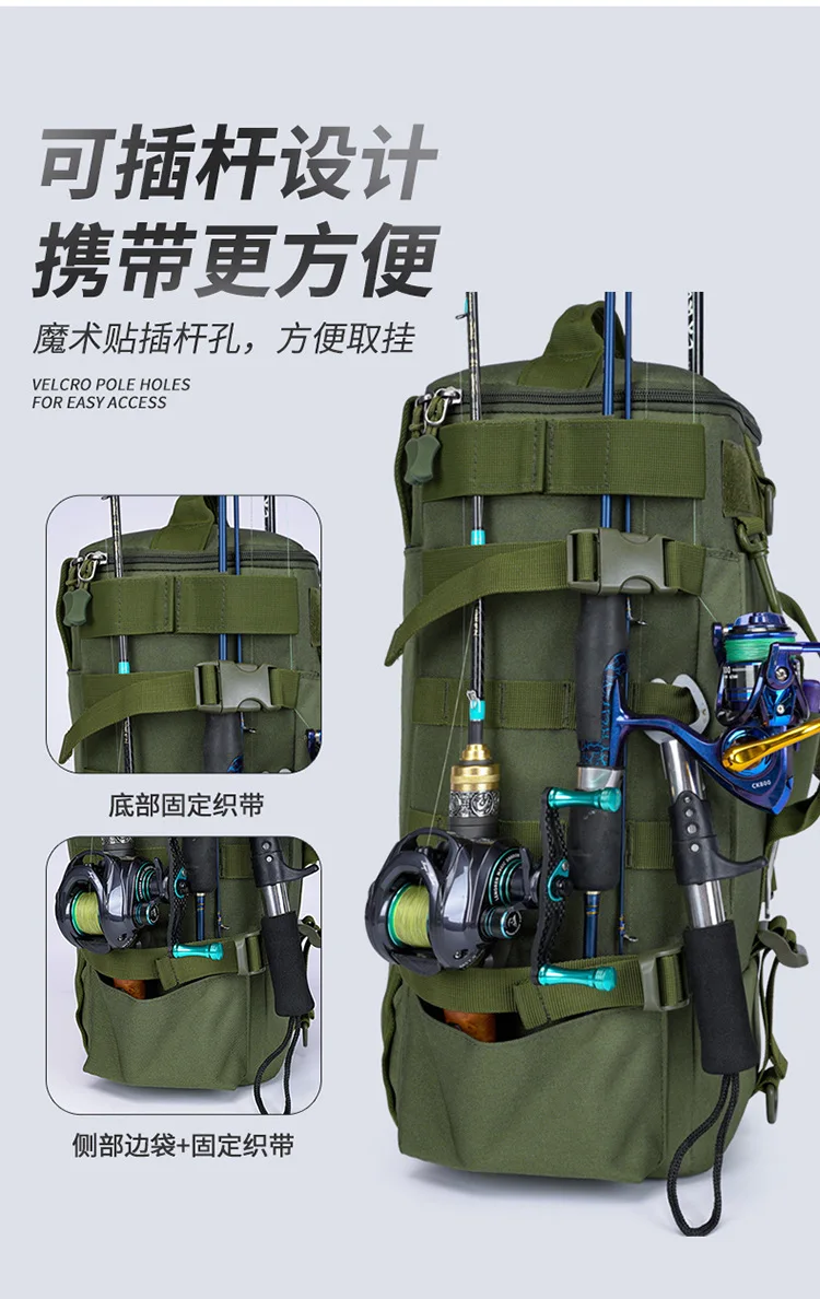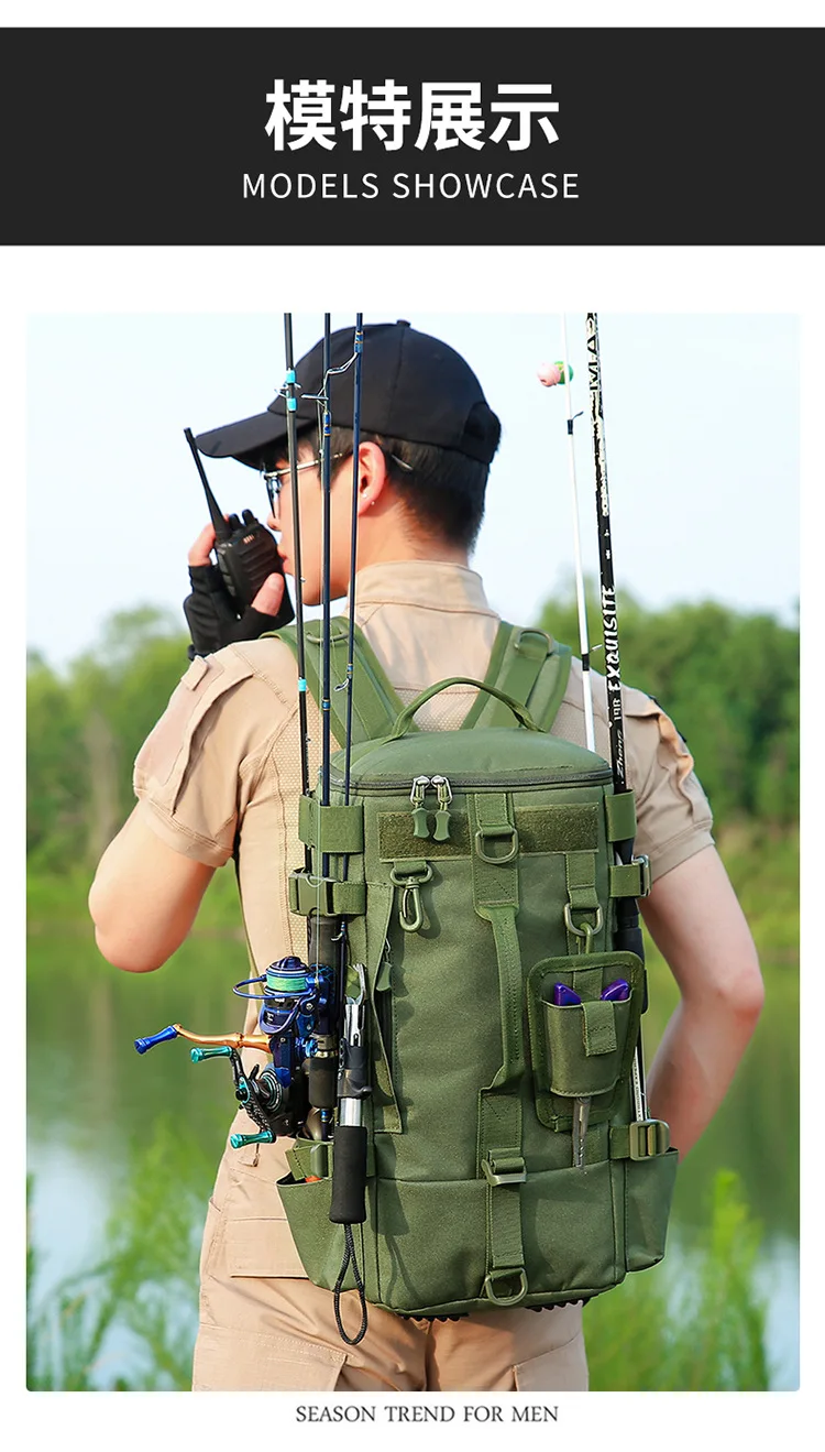 Mochila de pesca táctica, bolsa de aparejos con soportes para cañas, almacenamiento de equipos de pescado, Molle, Camping, senderismo, bolsa multifuncional al aire libre