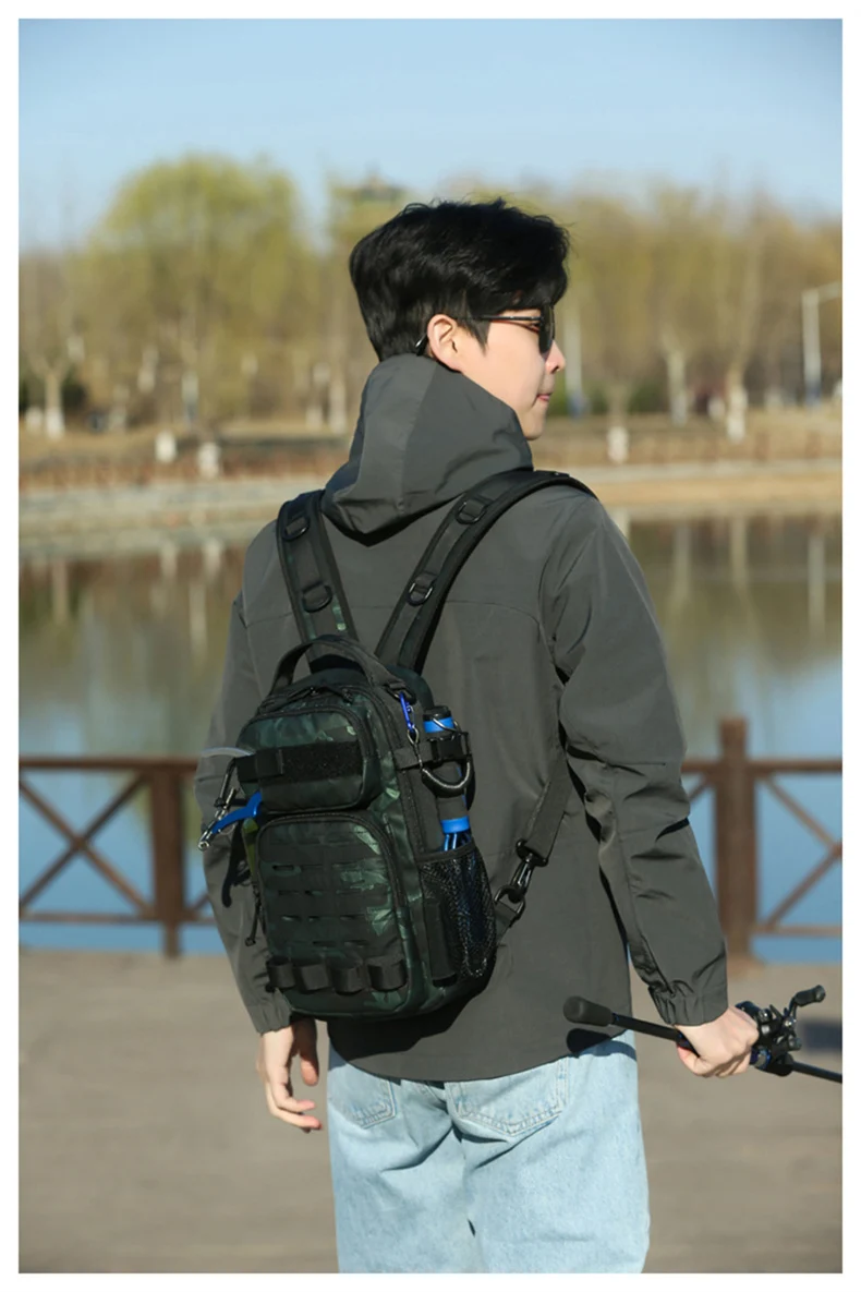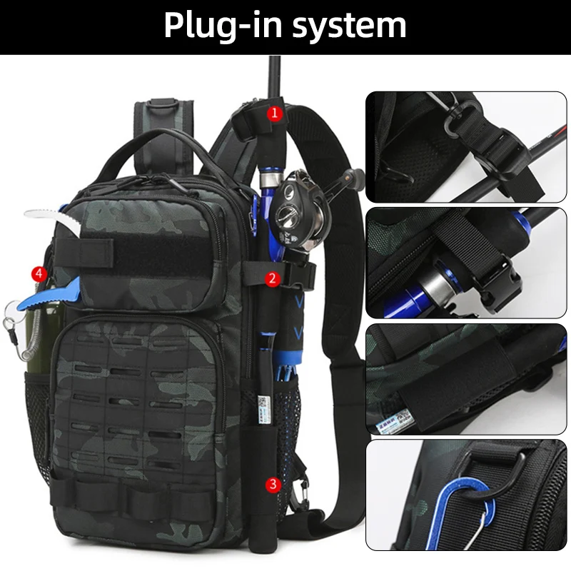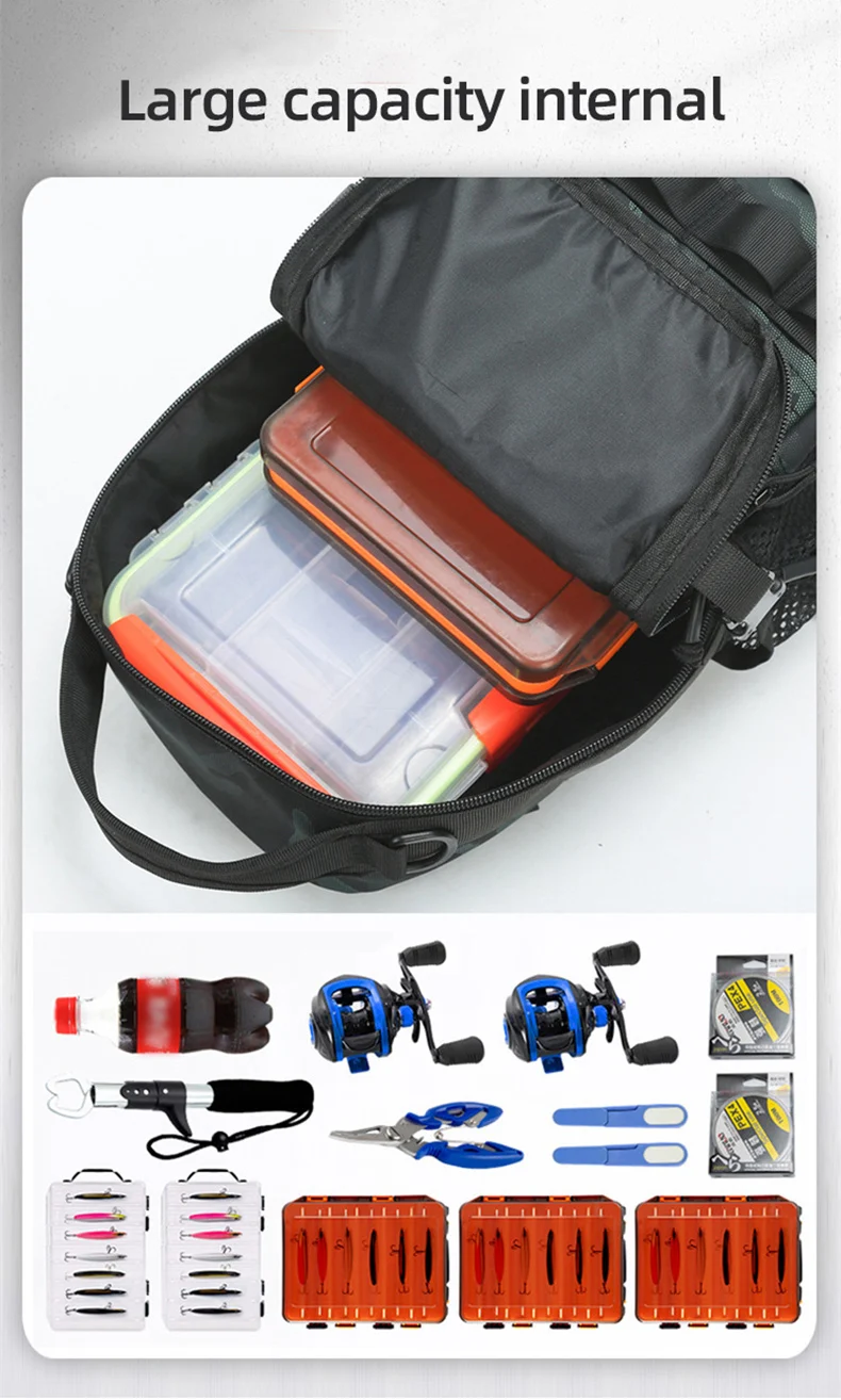 Mochila de pesca táctica, caja grande para peces, accesorios, almacenamiento de caña, bolso de hombro, bolsa multifuncional para acampar y escalar al aire libre