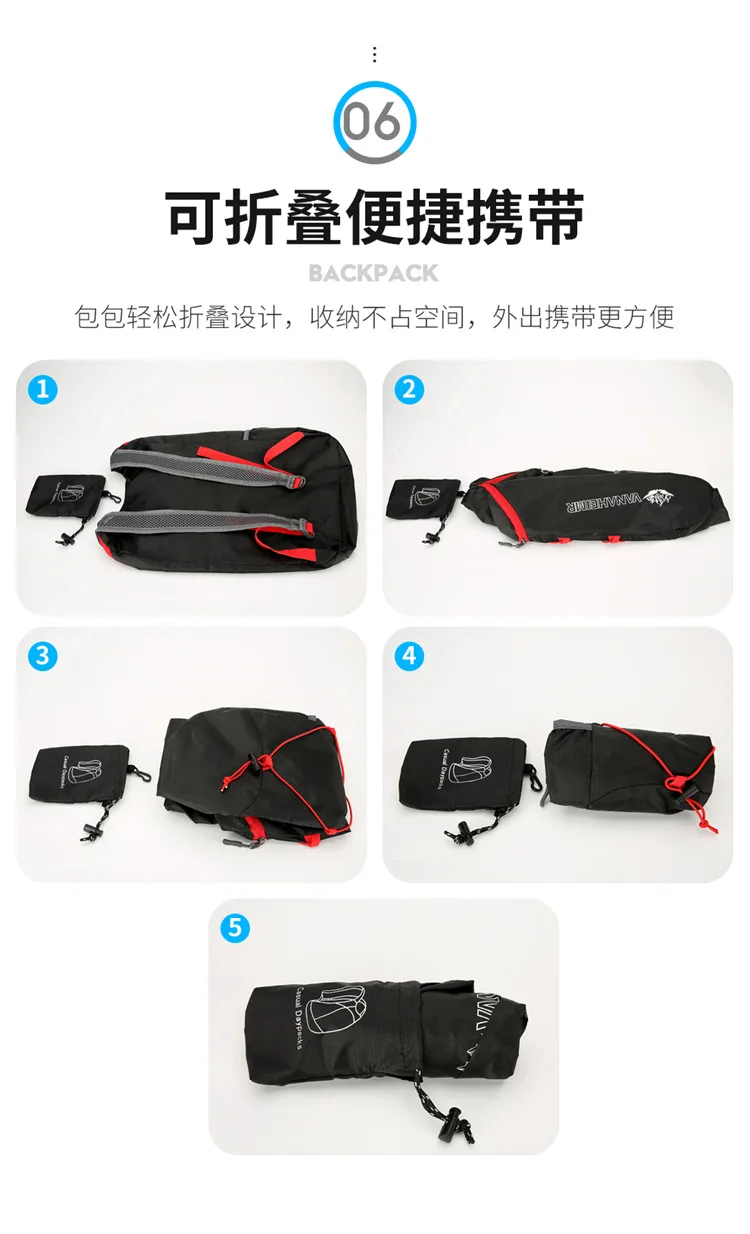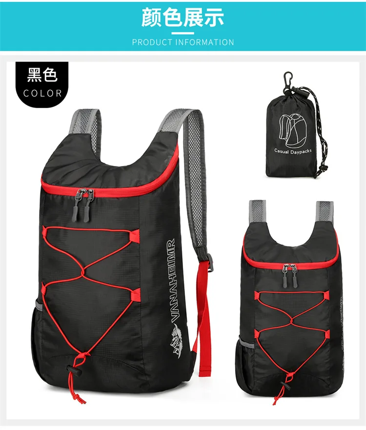 Mochila plegable multifuncional para exteriores, para acampar, senderismo, viajes, bolsa deportiva de tela de nailon impermeable ligera de alta densidad