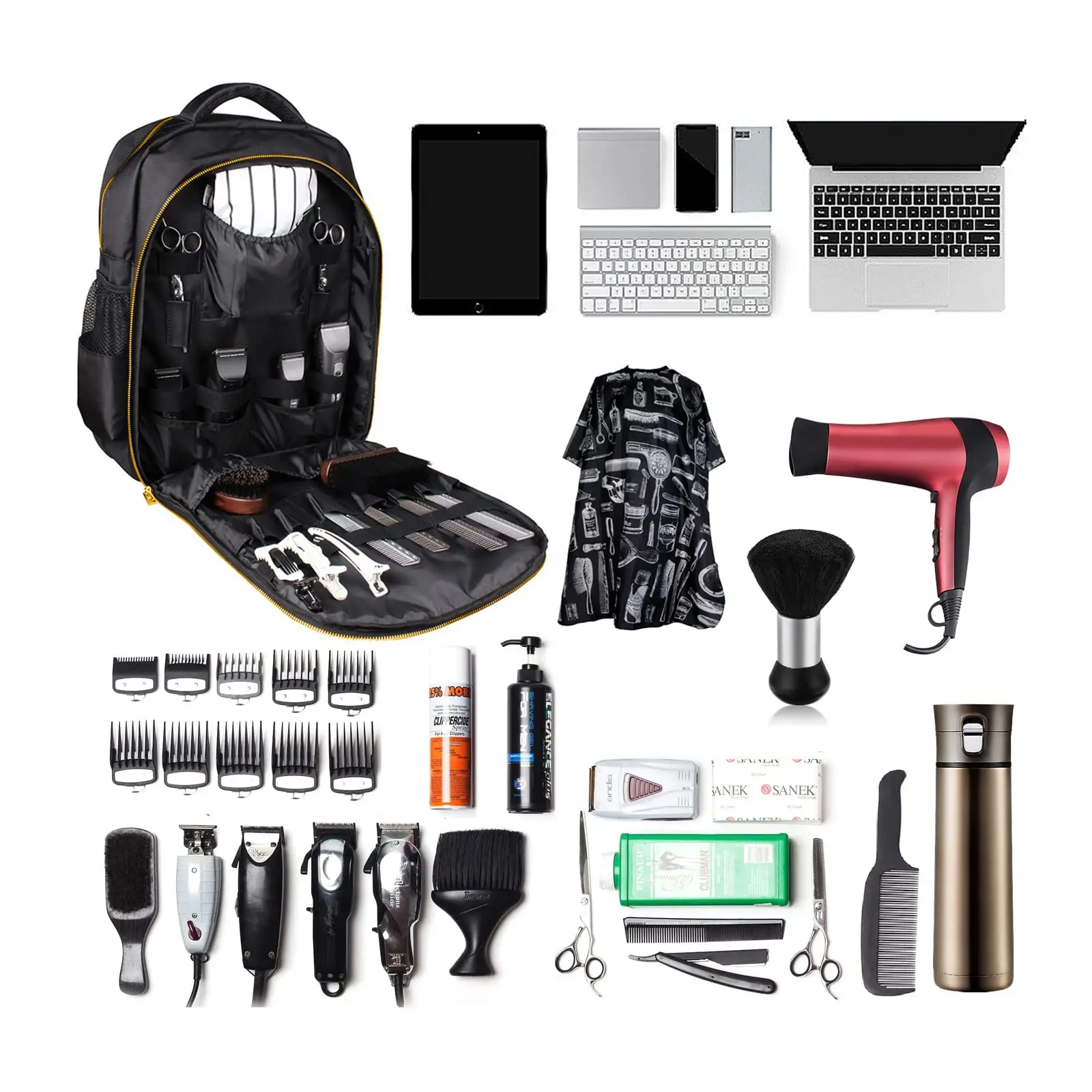 • Portátil:La mochila está diseñada para ser liviana y fácil de llevar, lo que le permite llevar sus herramientas de peinado a donde quiera que vaya.