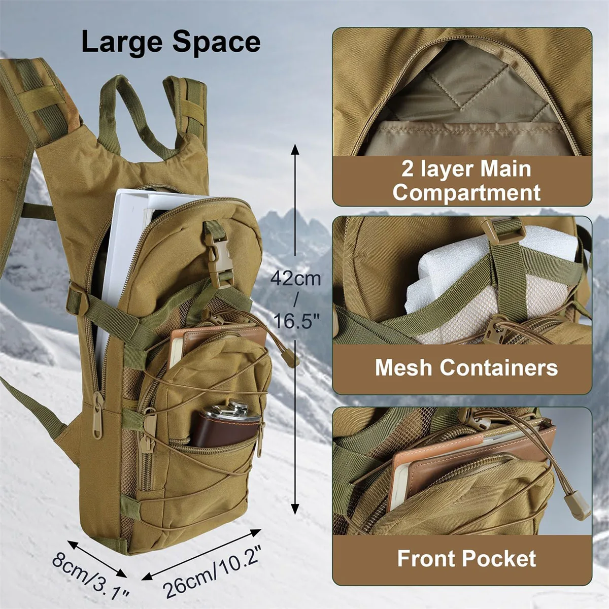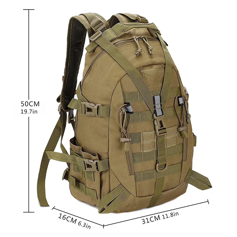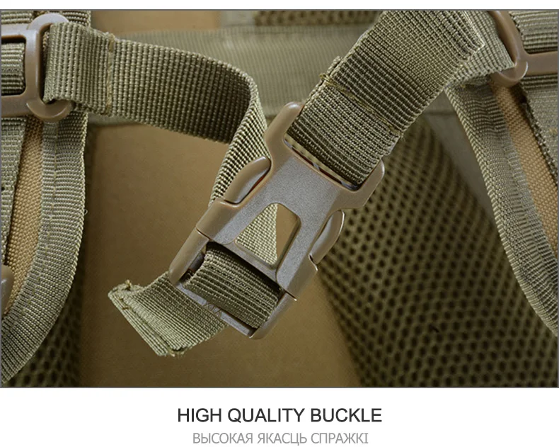 1.La mochila militar está hecha de tela Oxford 900D de alta densidad y una capa interior impermeable de PVC.