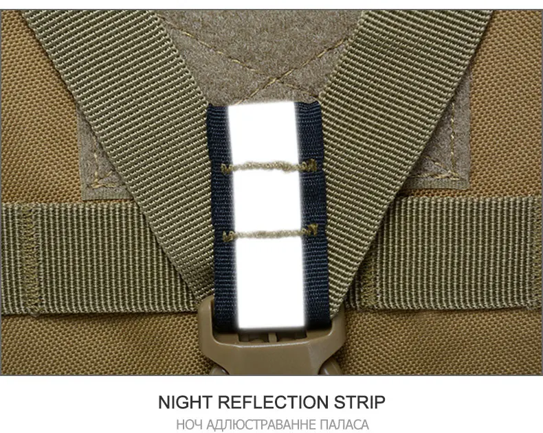 3.Le permite colocar una bolsa táctica o equipo como bolsa de asalto.El diseño reflectante de la mochila lo mantiene seguro en la oscuridad, perfecto para usar como mochila de motocicleta o mochila de bicicleta.